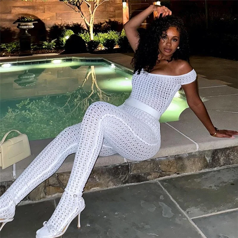 JY W24Q49170 Sexy 2024 Summer off Shoulder Sleeveless Jumpsuit One Piece Solid Bodycon Casual Hollow Out Jumpsuit for Women