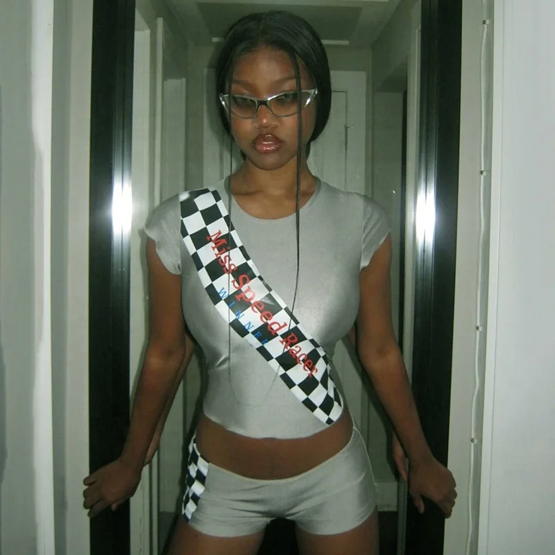 JY New Summer 2024 Print Crew Neck Short Sleeve Crop Top and Mini Pants 2 Piece Set Bodycon Casual Women's Set