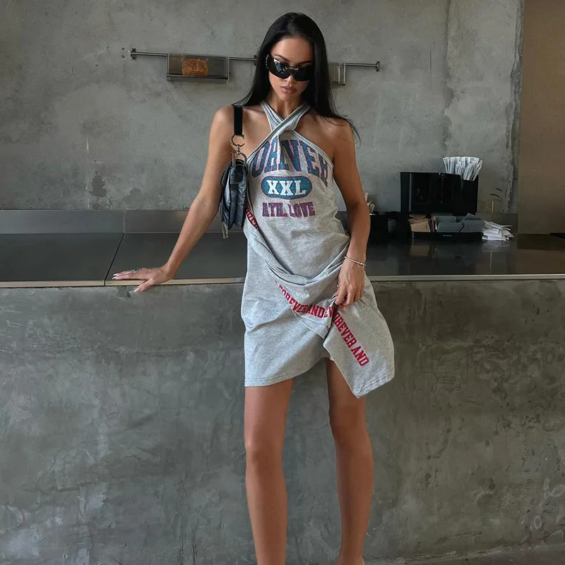JY Summer 2024 Print Sleeveless off Shoulder Sexy Mini Dress Bodycon Casual Fashion Streetwear Dress Women Lady