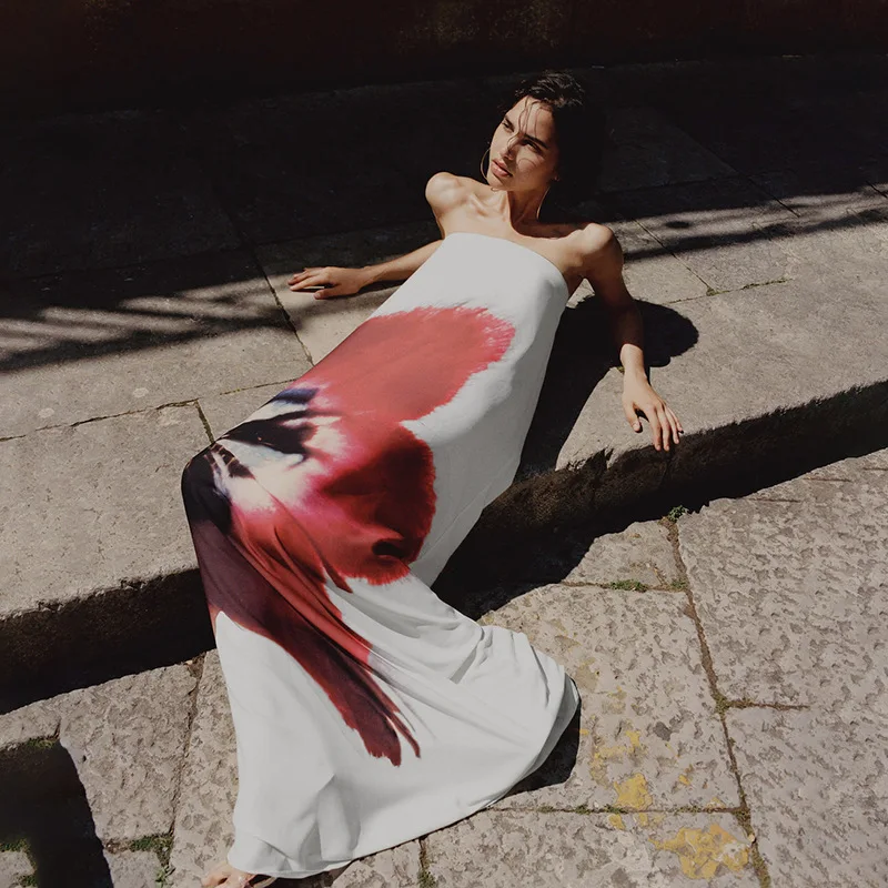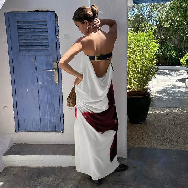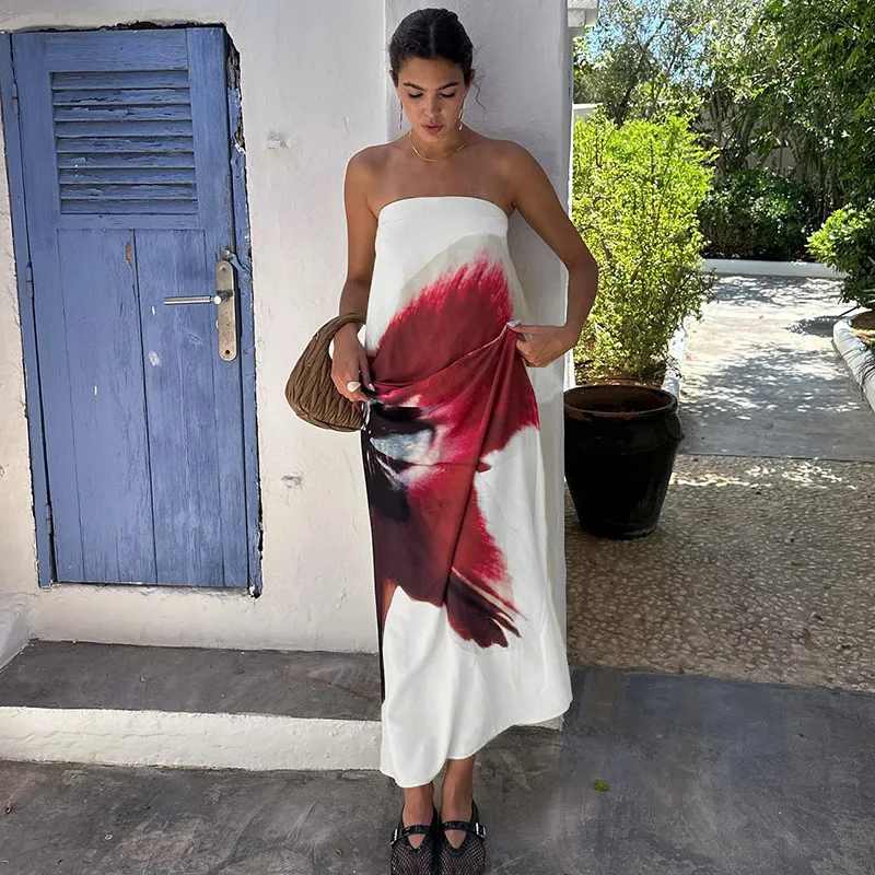 JY K24D49099 Fashion Sexy Strapless Backless Sleeveless Dress Maxi Print Floral Dress Casual Elegant Streetwear Women Lady