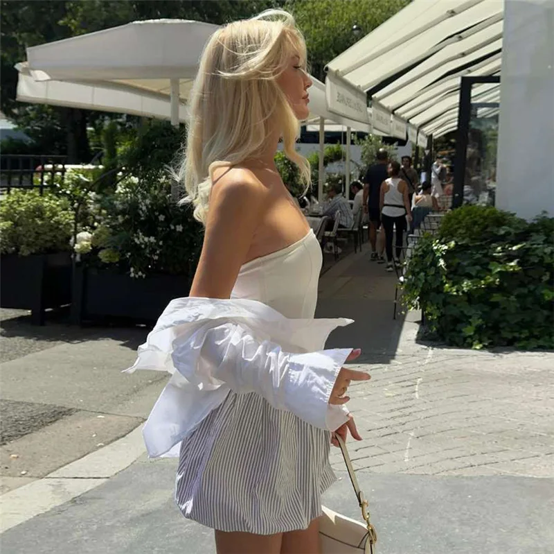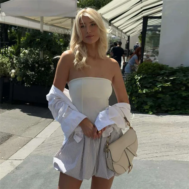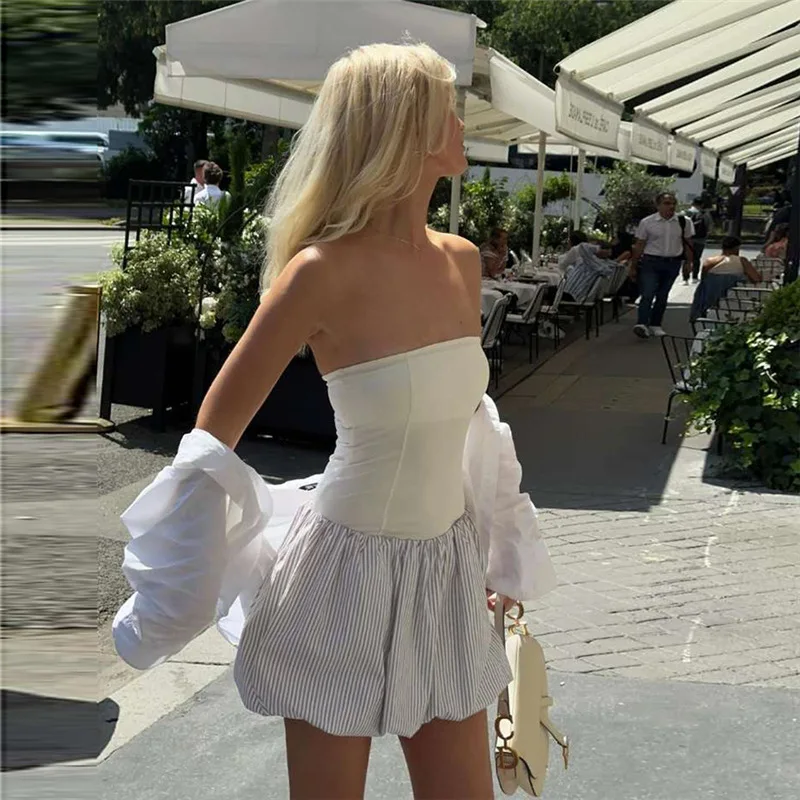 JY K24D51050 Sexy Elegant Women's Mini Dress Tube Tube Strapless Slim Backless Dress Stripe Printing Short Dress for Women