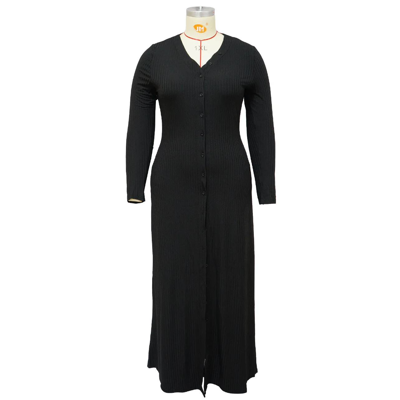 N7701 Autumn Winter Plus Size Dresses Women Casual Single Breasted V-Neck Ribbed Knitting Strip Long Dresses Women Maxi Dress