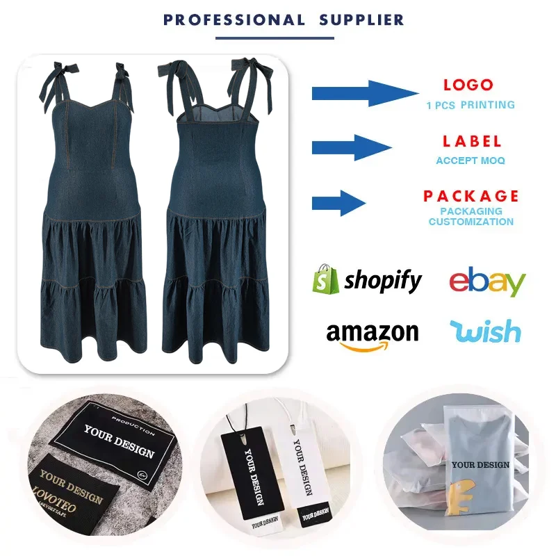 Y218382 Factory Custom Plus Size Jeans Dresses Women Casual Sleeveless Halter Denim Summer Dress for Women