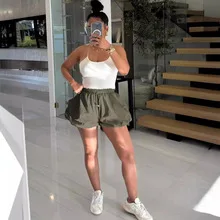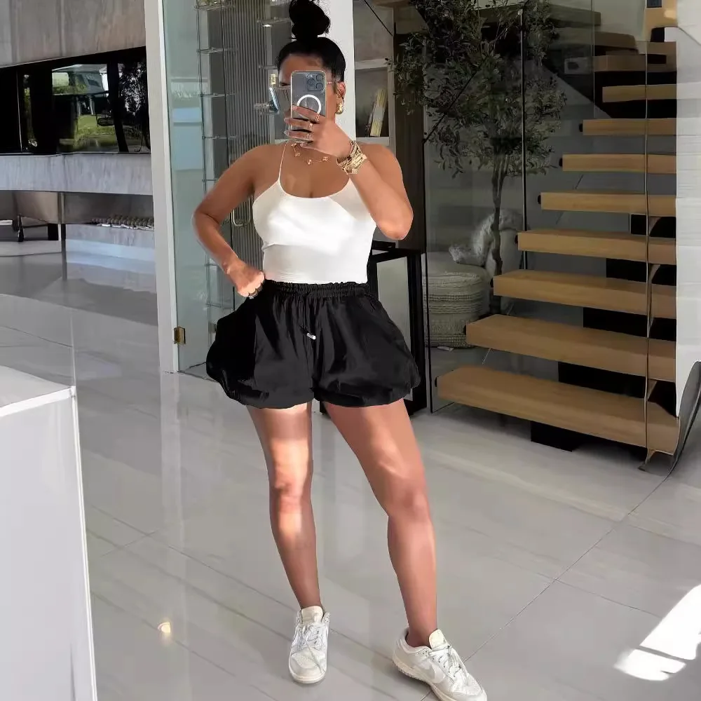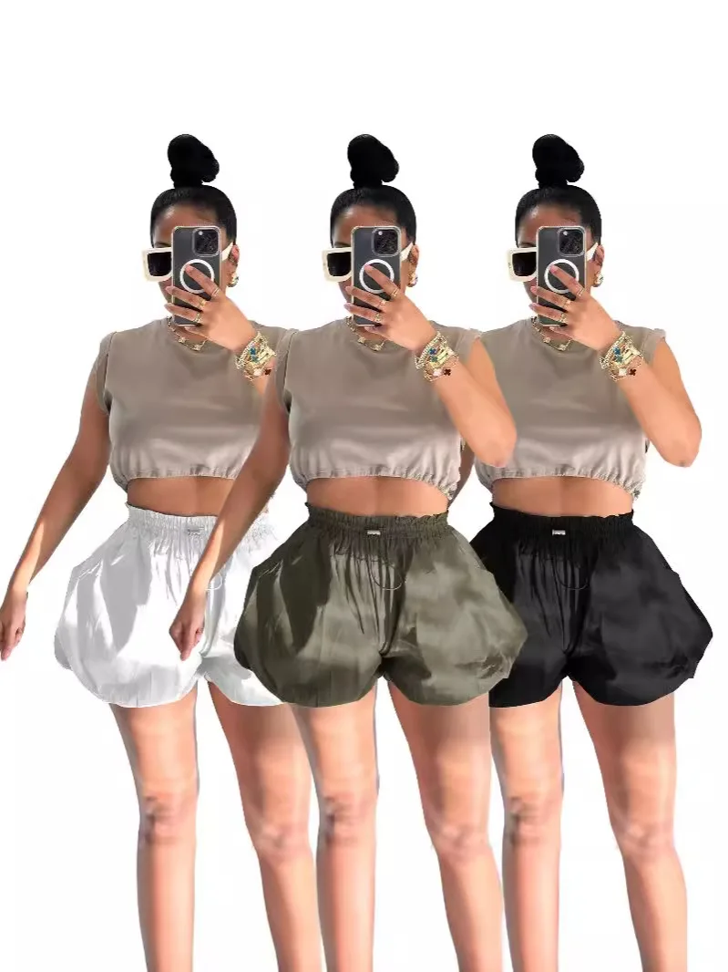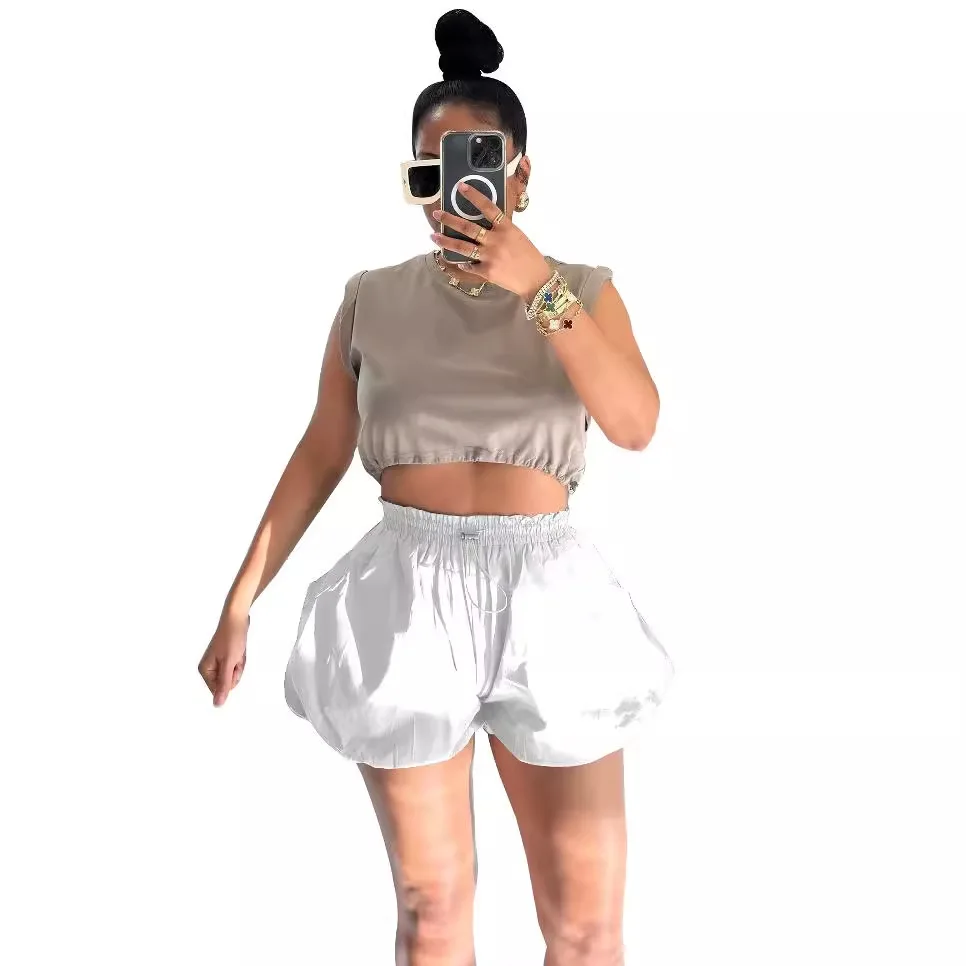JY-1005 Solid Summer Puffer Shorts Workout Streetwear Drawstring Bubble Shorts Women's Casual Mini Pants