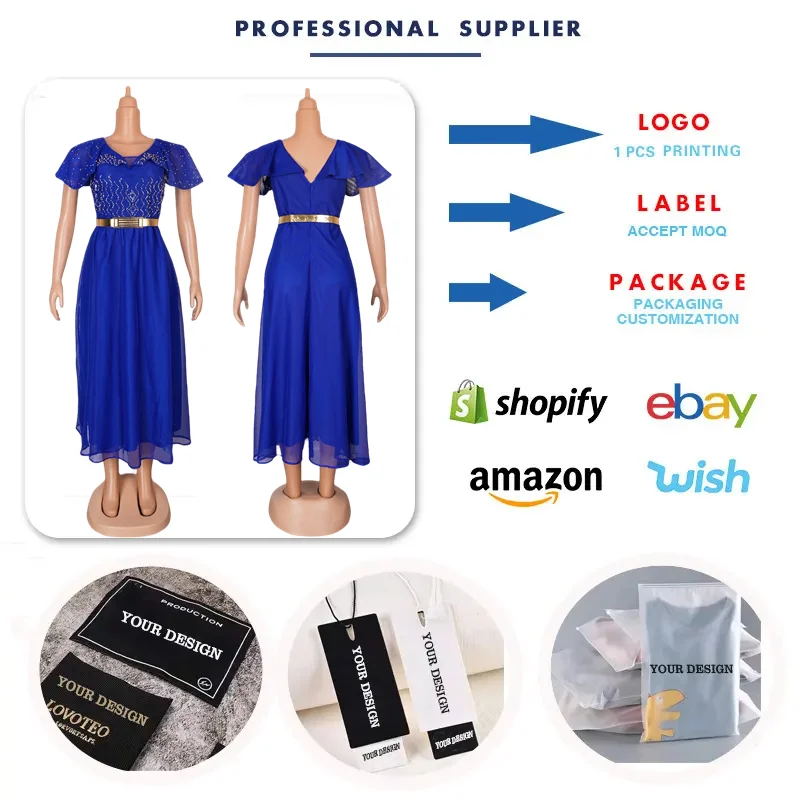 S9963 Best-selling African Dresses for Women Clothing High Waist V-Neck Beaded Church Dresses for Women Plus Size Dress