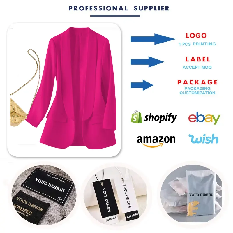 X818 # Best-selling Spring Autumn Women Jackets Elegant Temperament Solid Color V-Neck Long Sleeve Suit Blazers for Women