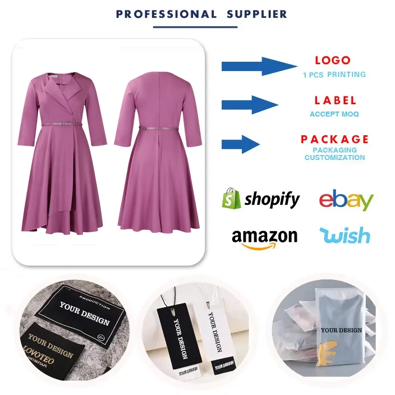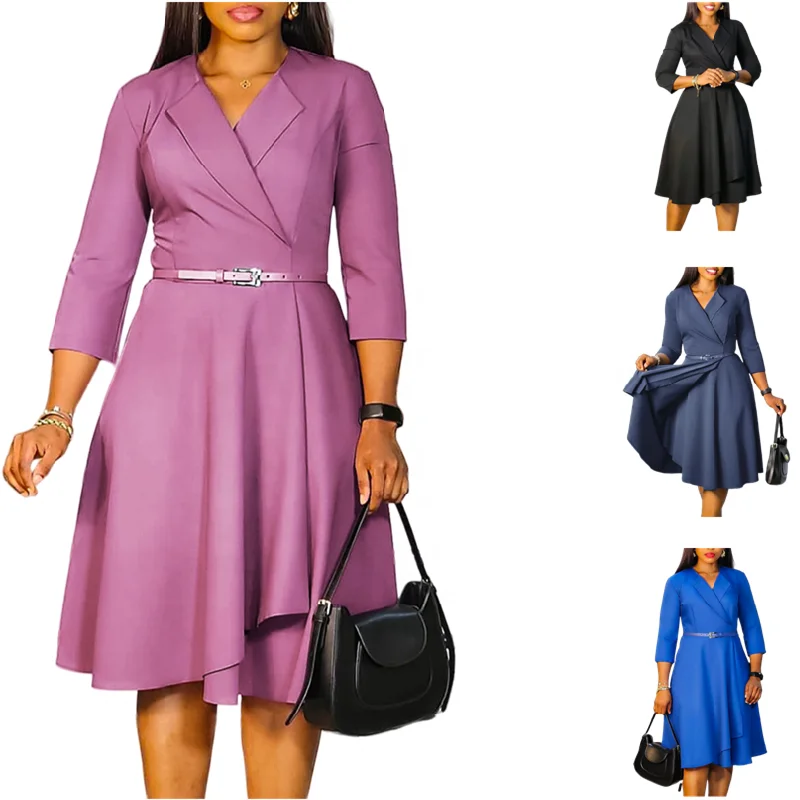 D524 Latest Design Autumn Career Dresses Women Lady Elegant V-neck High Waist A-line Office Lady Dress African Dresses