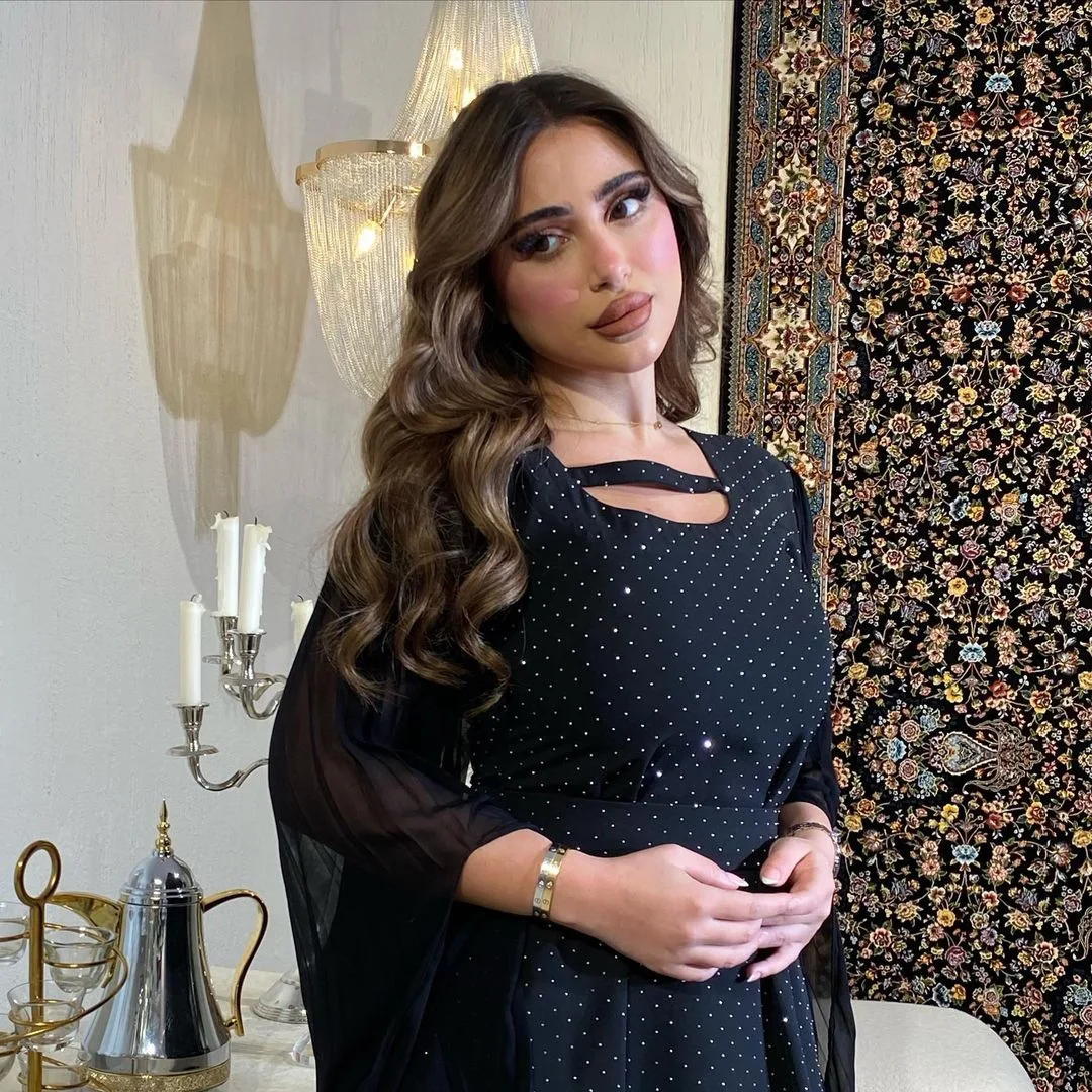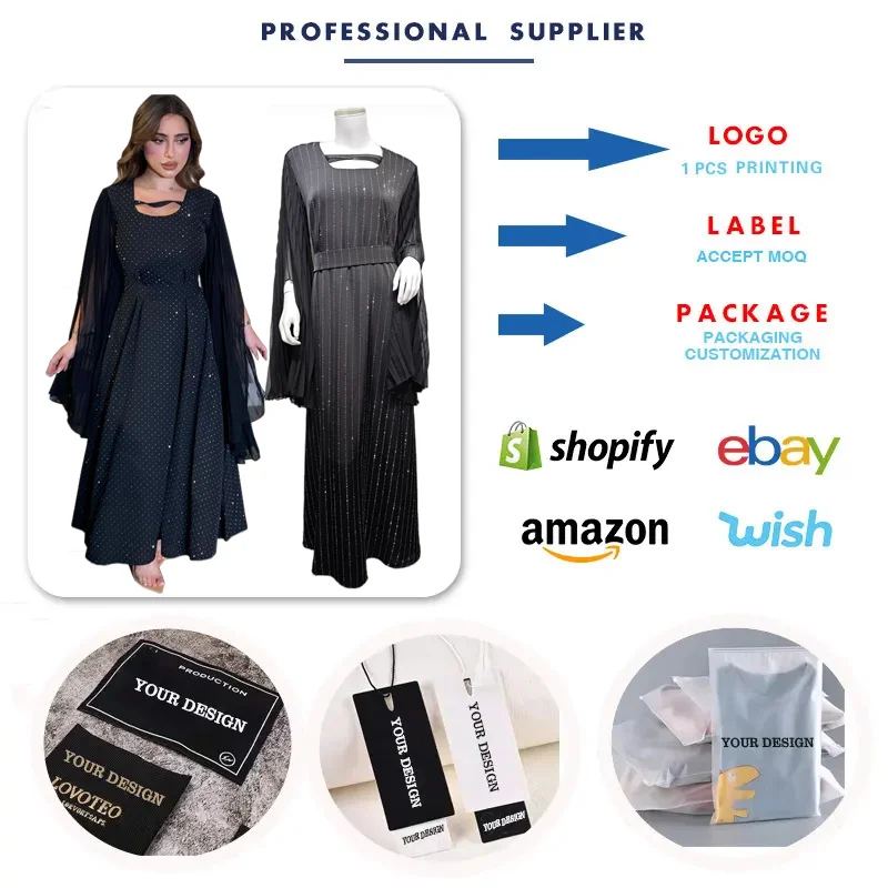 MQ138 Trendy Chiffon Muslim Dresses Women Casual Long Pleated Sleeve Pullover Rhinestone Beaded Middle Eastern Dubai Robes Abaya