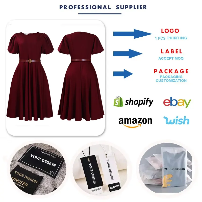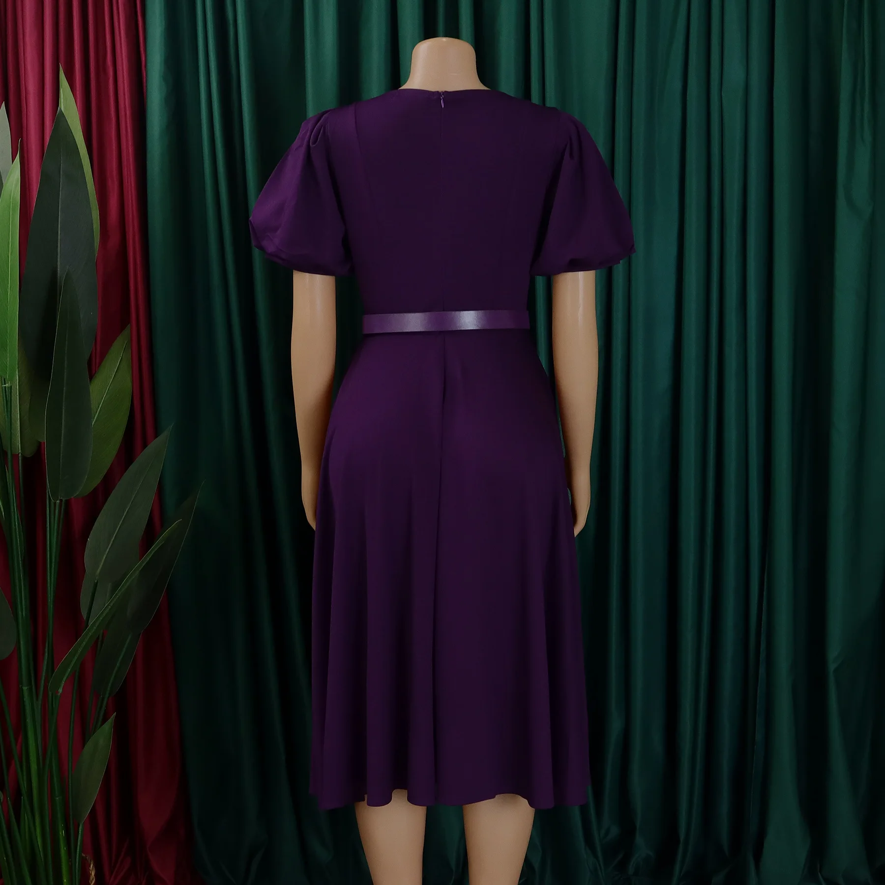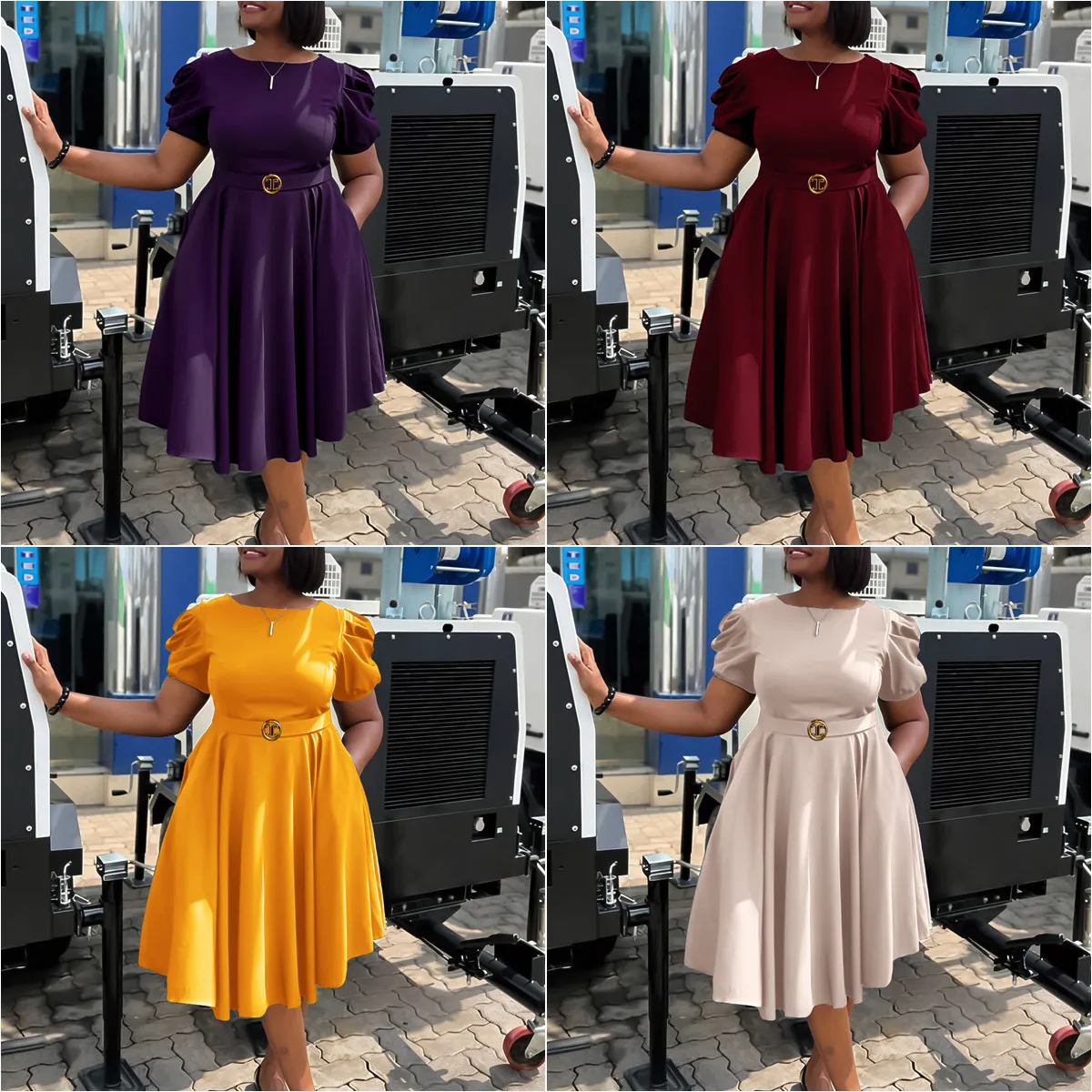 C8601 Latest Design Career Dresses Women Casual Elegant O Neck Puff Sleeve A-line Ladies Office Dress Church Dresses for Women