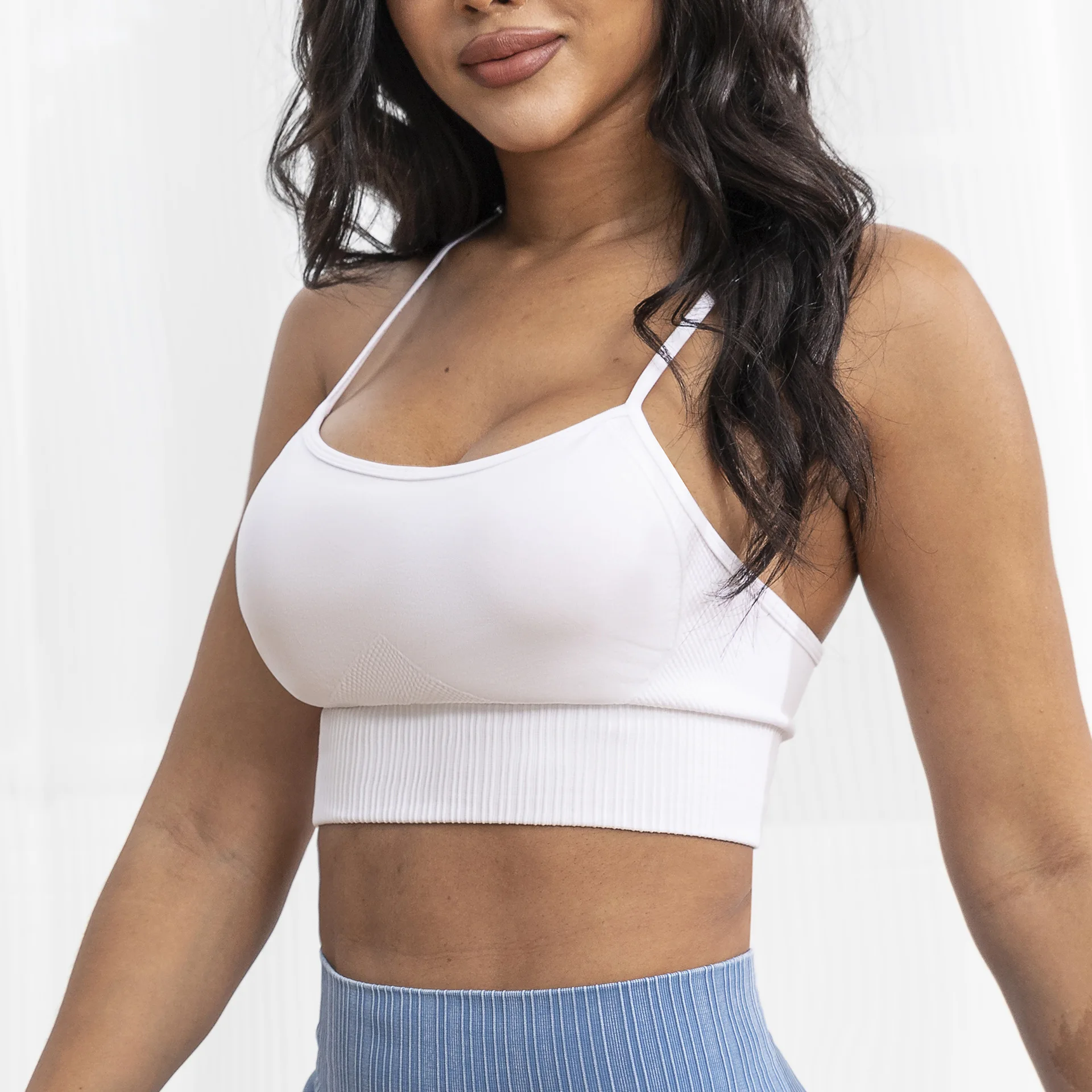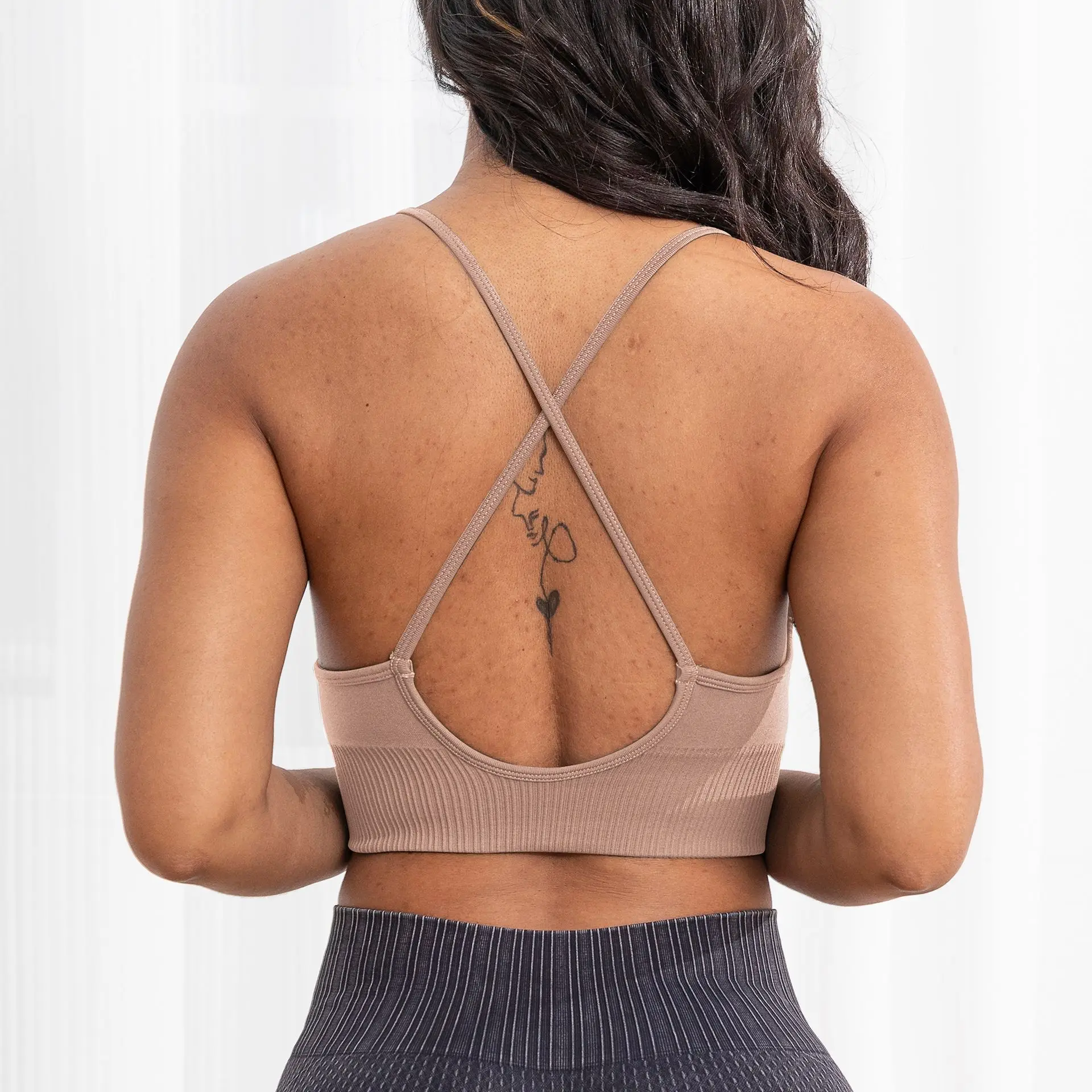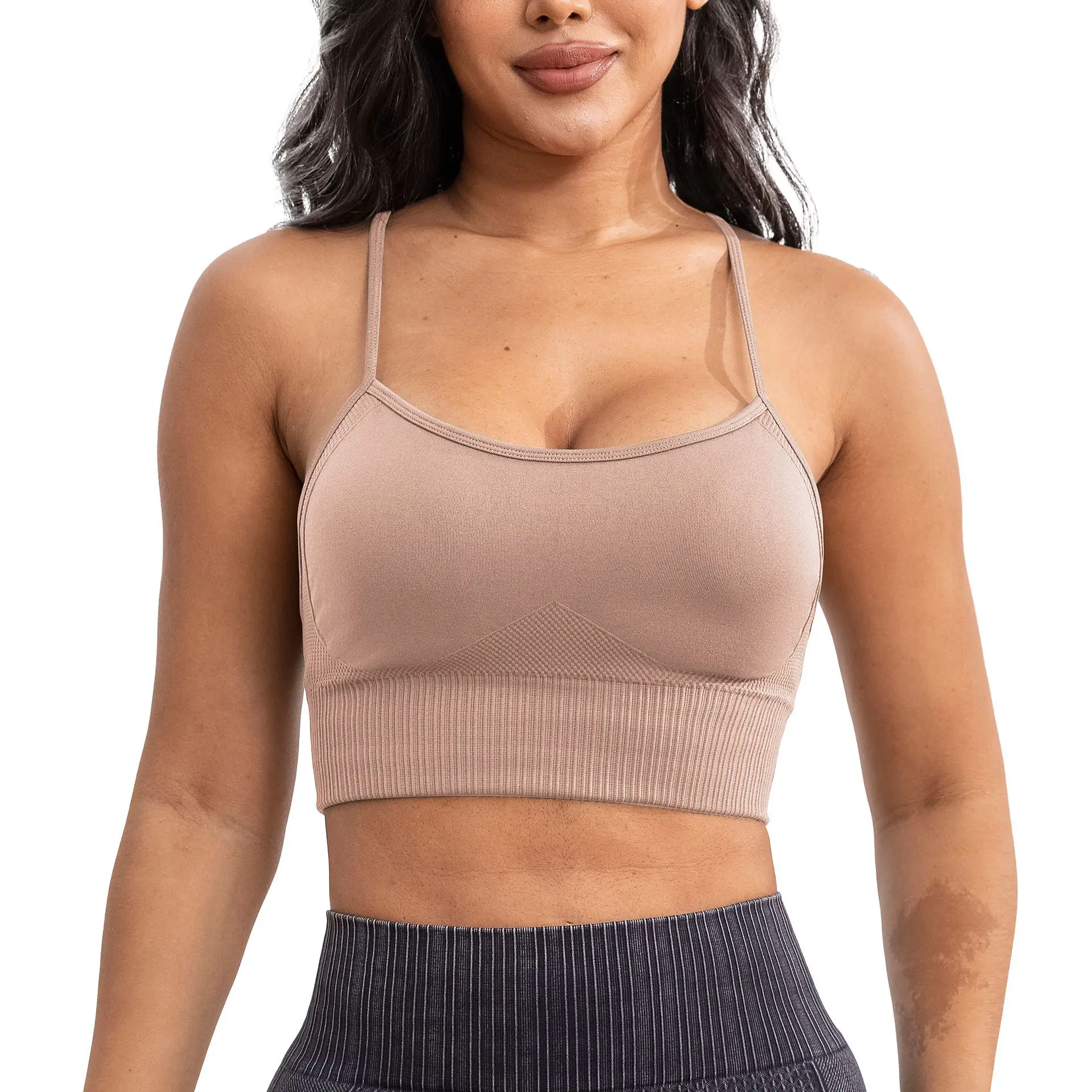 Custom Logo Seamless Yoga Bra Lightweight Padded Quick Dry Breathable Fitness Sports Tops Backless Gym Running Bra for Women
