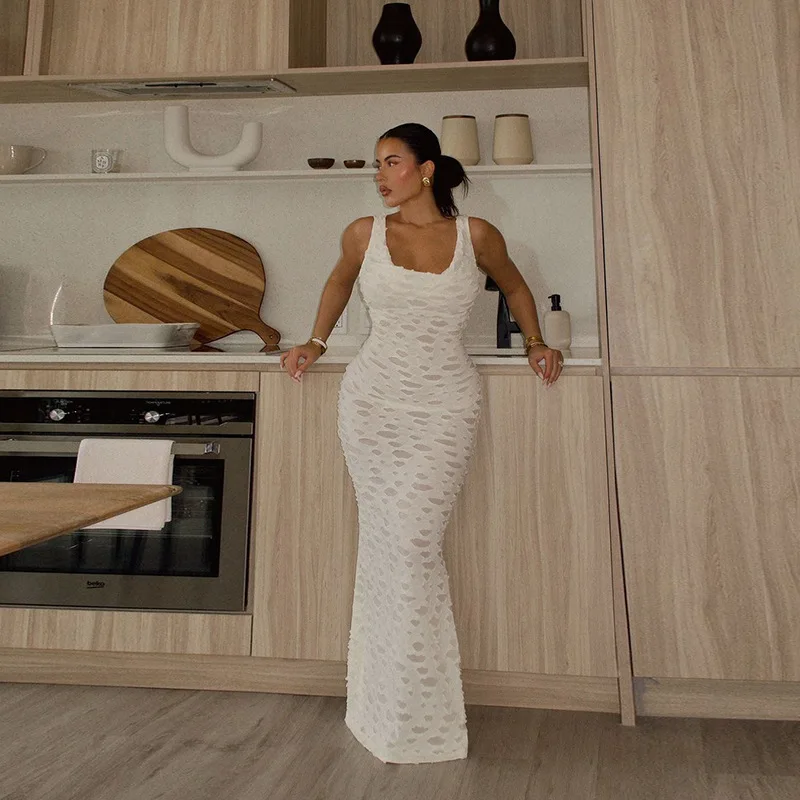 JY Streetwear Summer square Neck Sleeveless Backless Solid Dress Skinny Sexy Maxi Package Hip Dress for Women Lady