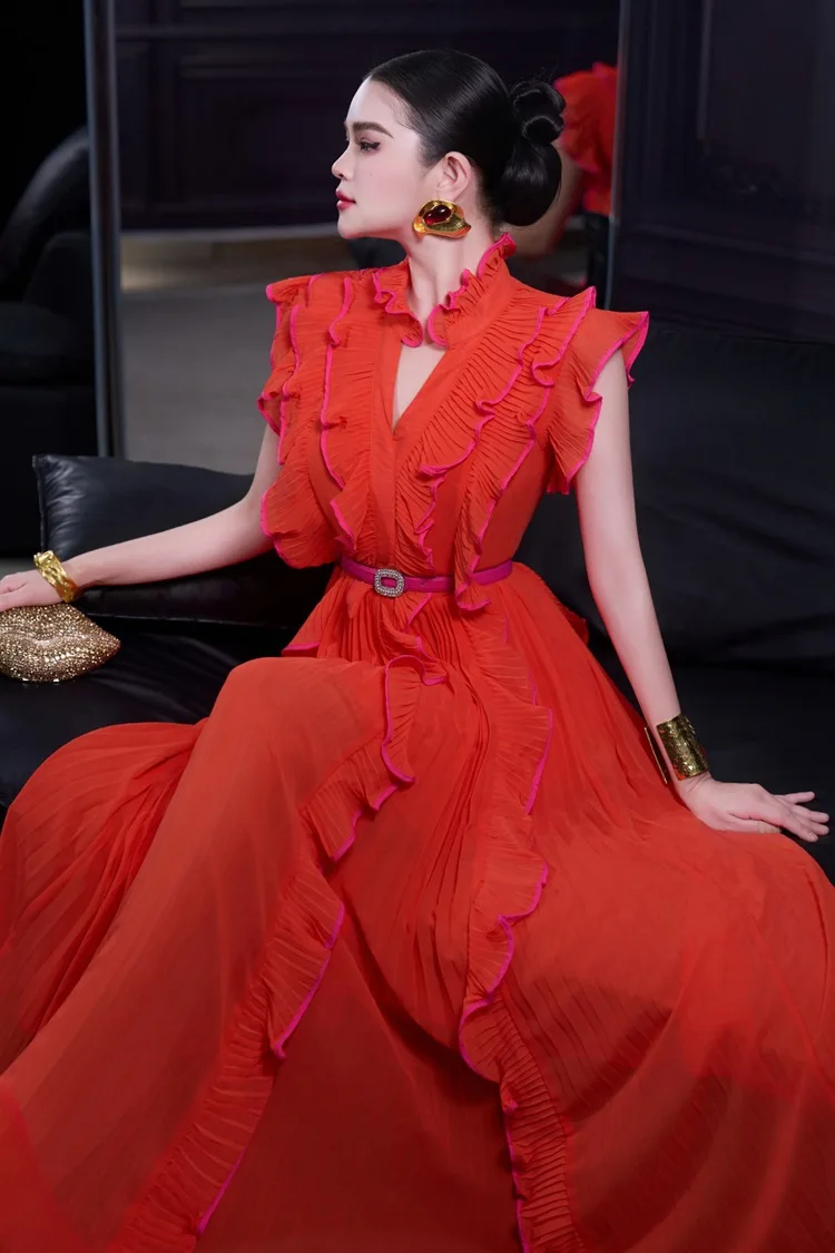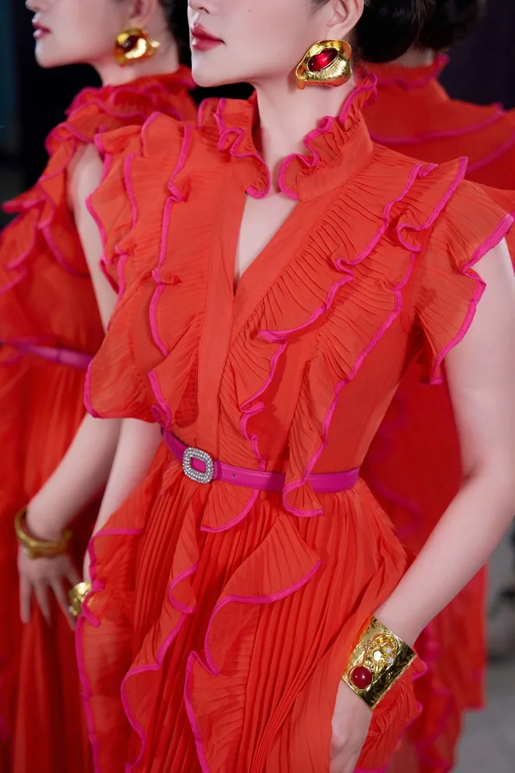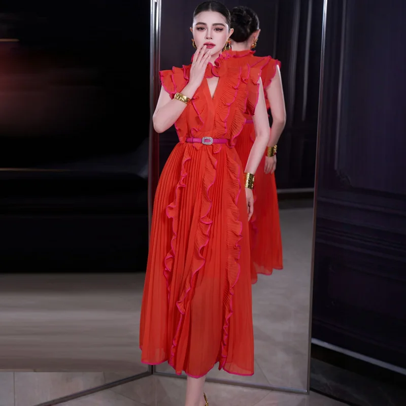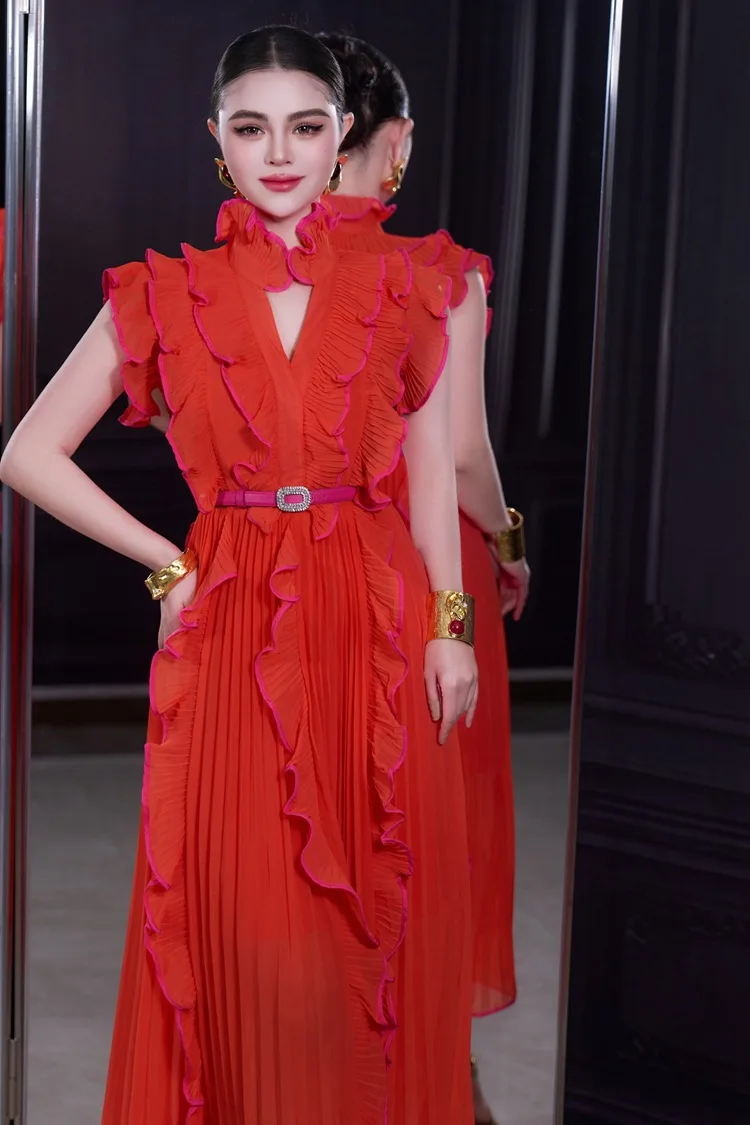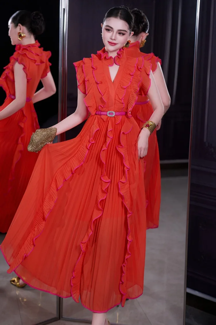 Bettergirl 2026 Ramadan Sexy V-neck ruffle sleeve design pleated dress