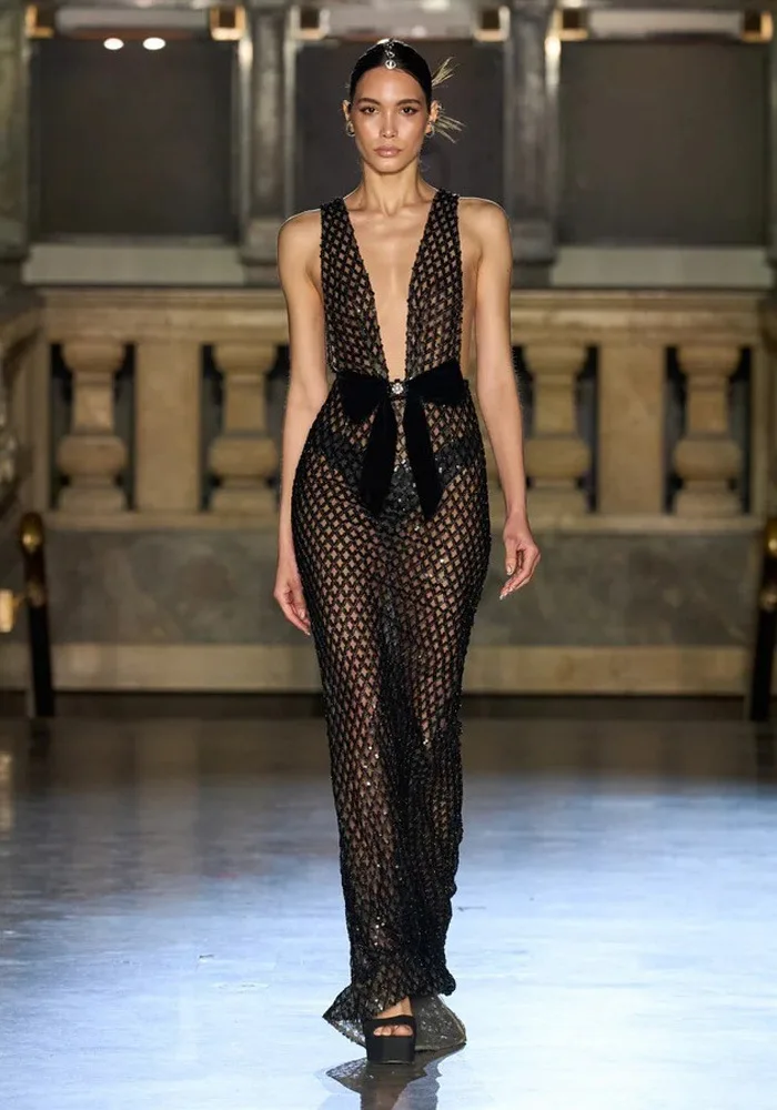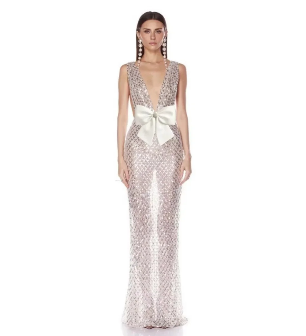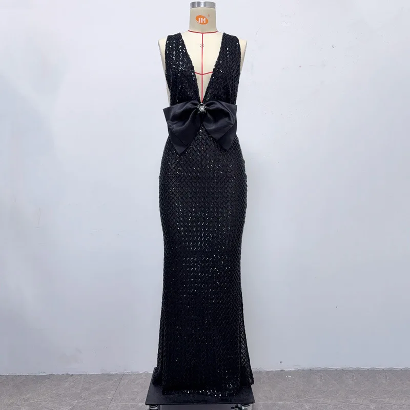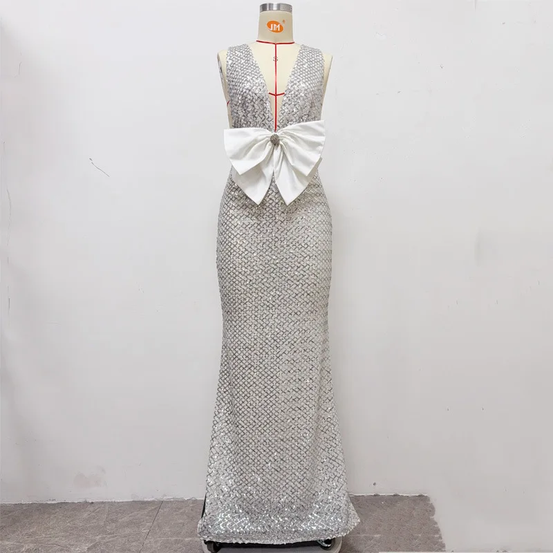 Bettergirl 2026 Ramadan New V-neck bow decoration sequined fish tail party dress
