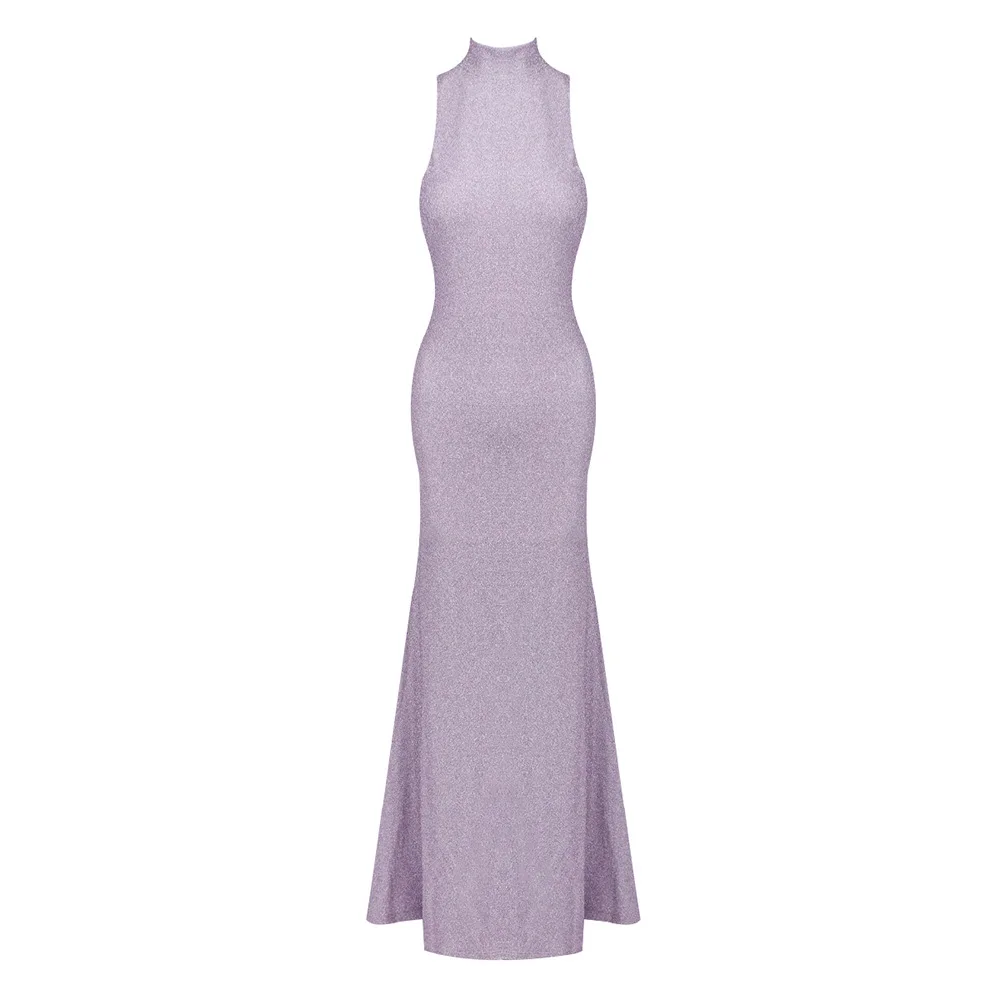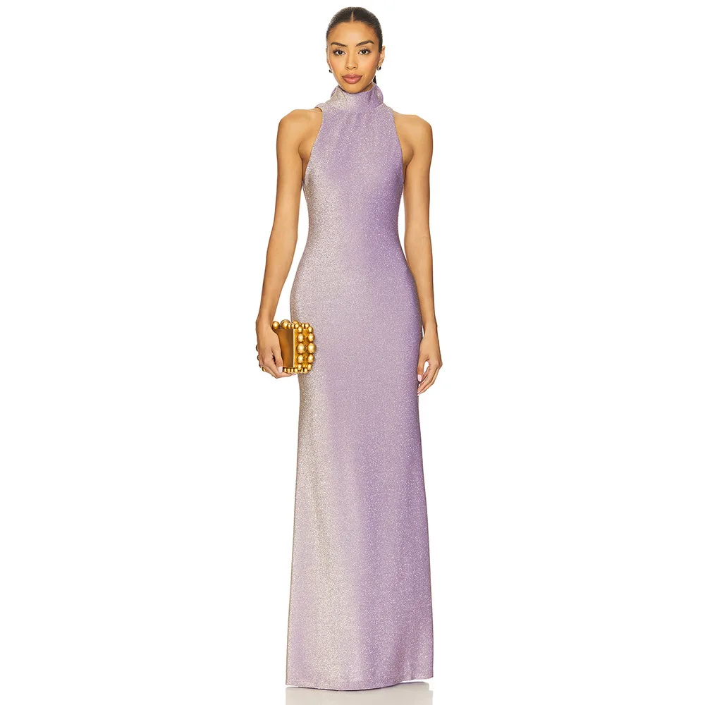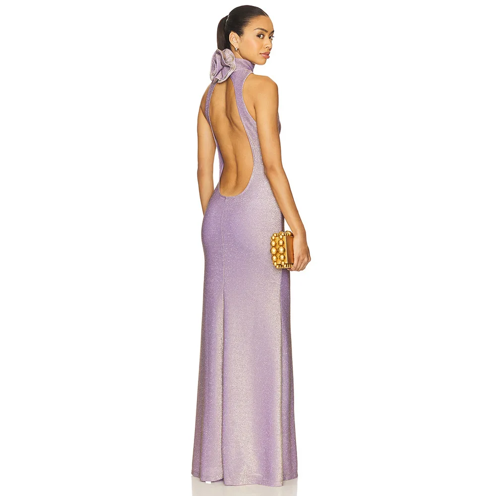 2026 High-Quality Sleeveless Round Neck Fitted Floral Long Dress Solid Color Beach Dress Evening Gown