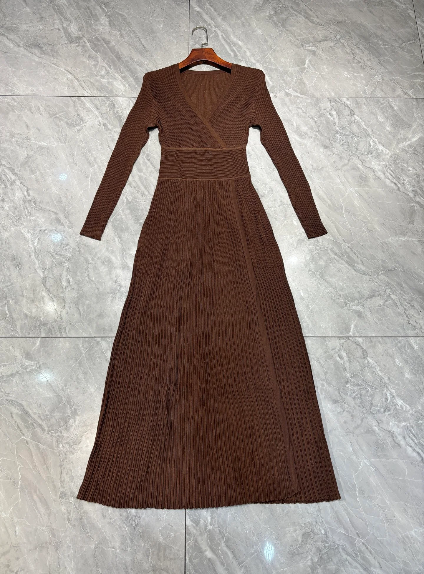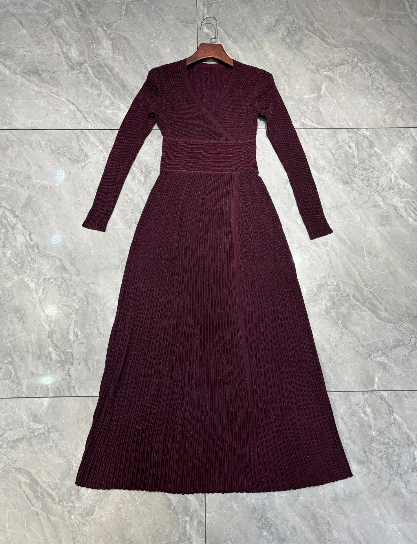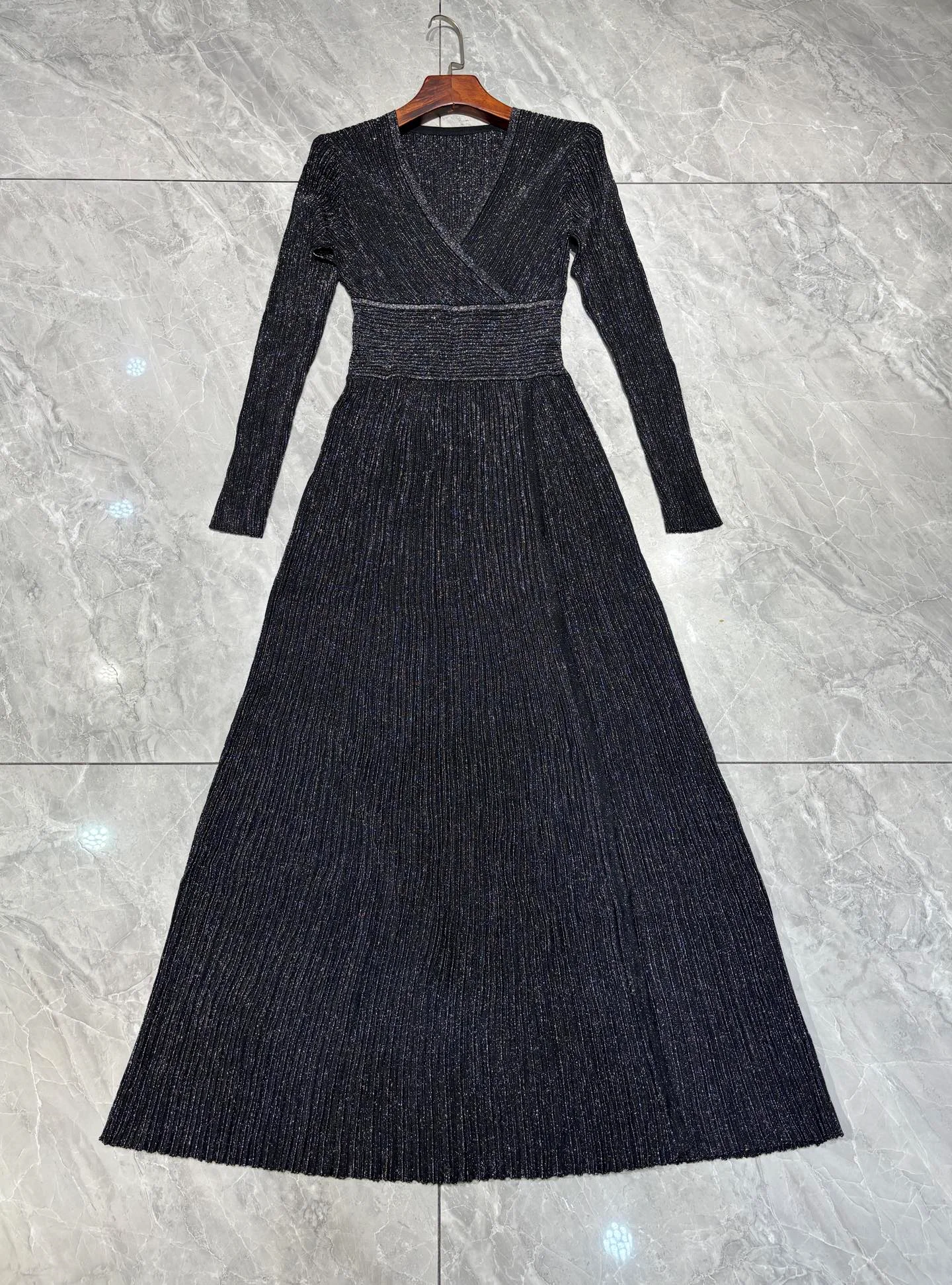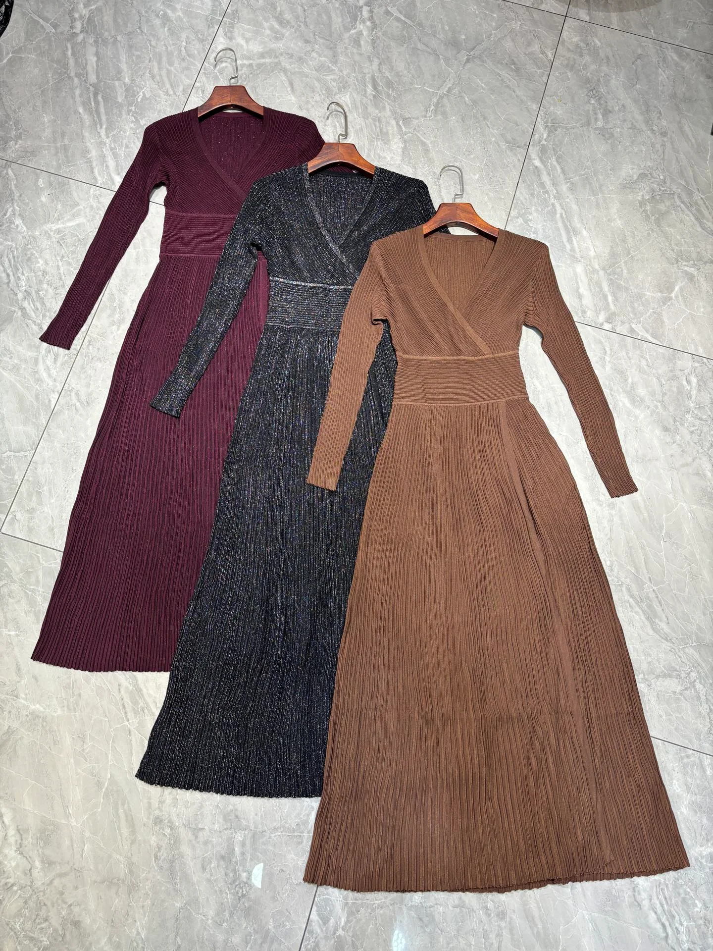 Bettergirl 2026 Ramadan New gold wire contrasting V-neck high elasticity knitted mid length dress