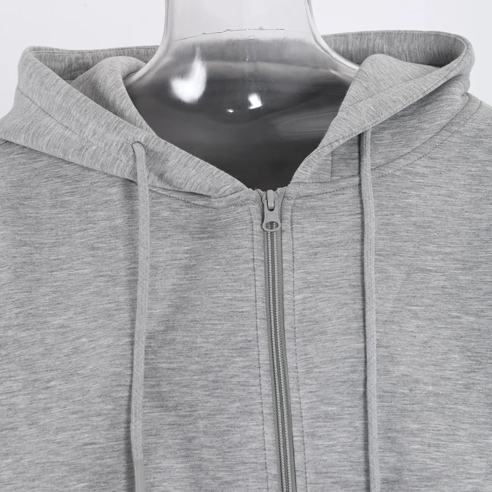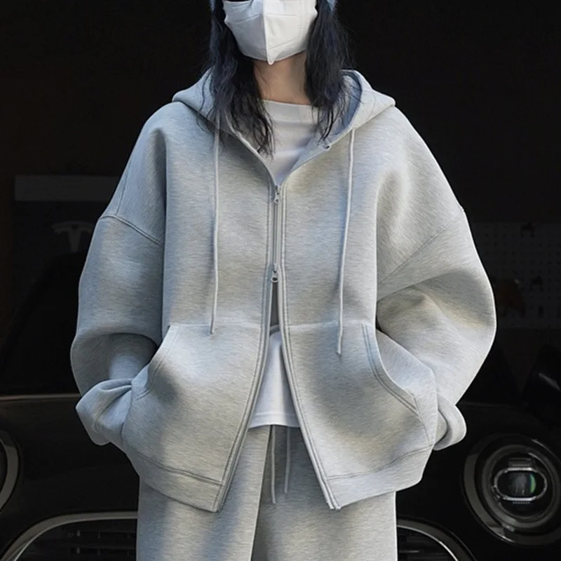Early Autumn New Korean Gray Casual Women's Suits Loose Sports Zipper Hoodie Wide Leg Pants Fashion Elegant Two-piece Set