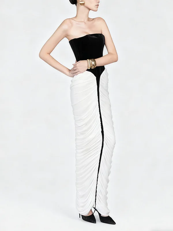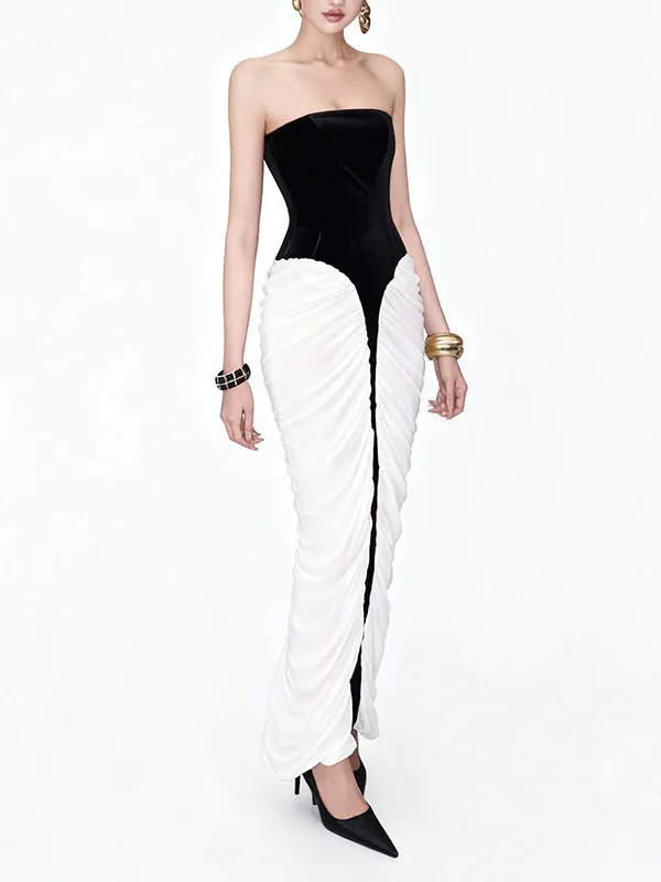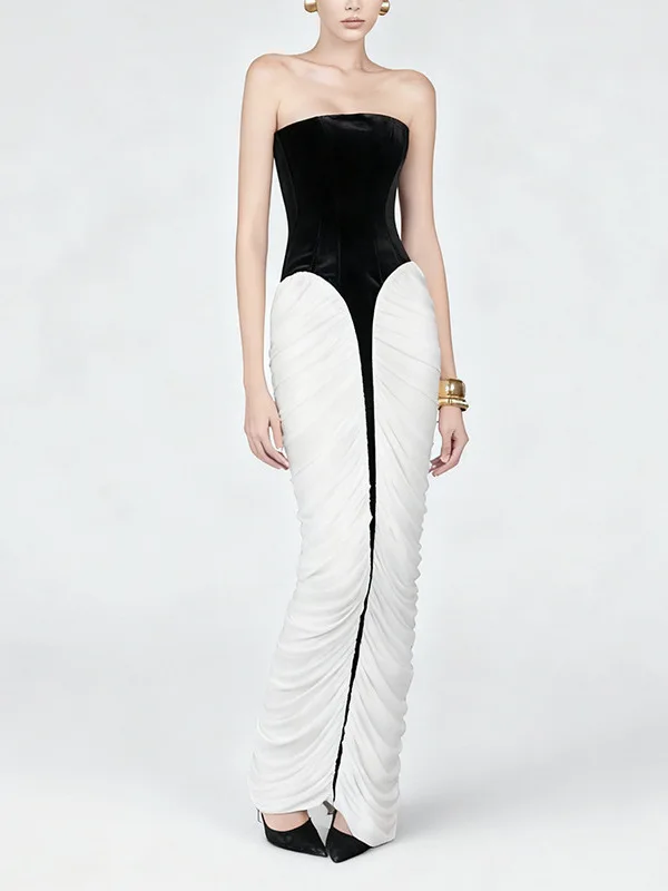Bettergirl French Sexy Black Velvet Long Dress 2026 Autumn New Black White Striped Tight Party Evening Dress