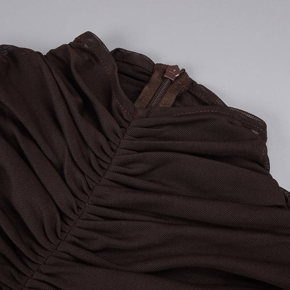 ZYHT 73849 European Wholesale Fashion Casual One Shoulder Ruched Maxi Dress Side Slit Pleated Long Sleeve Dresses for Women