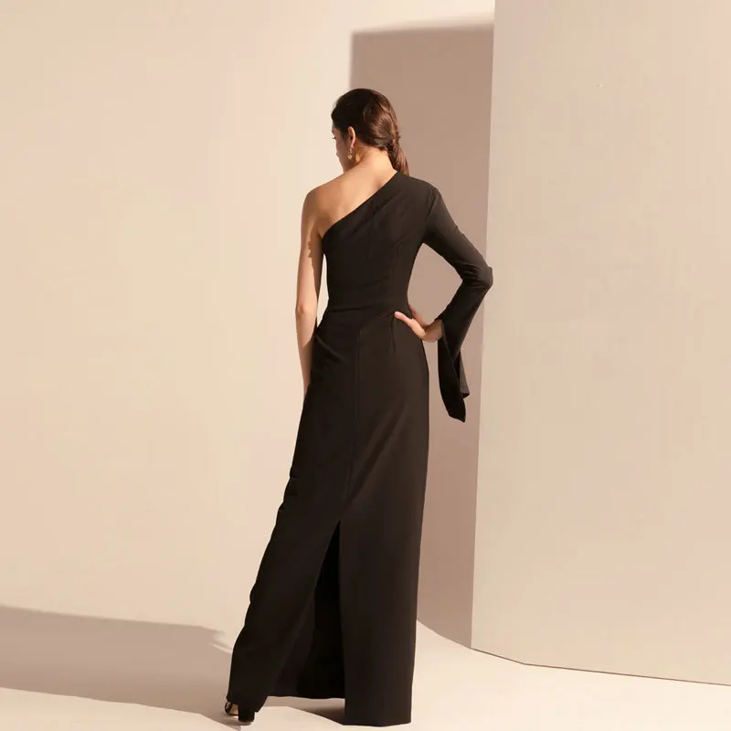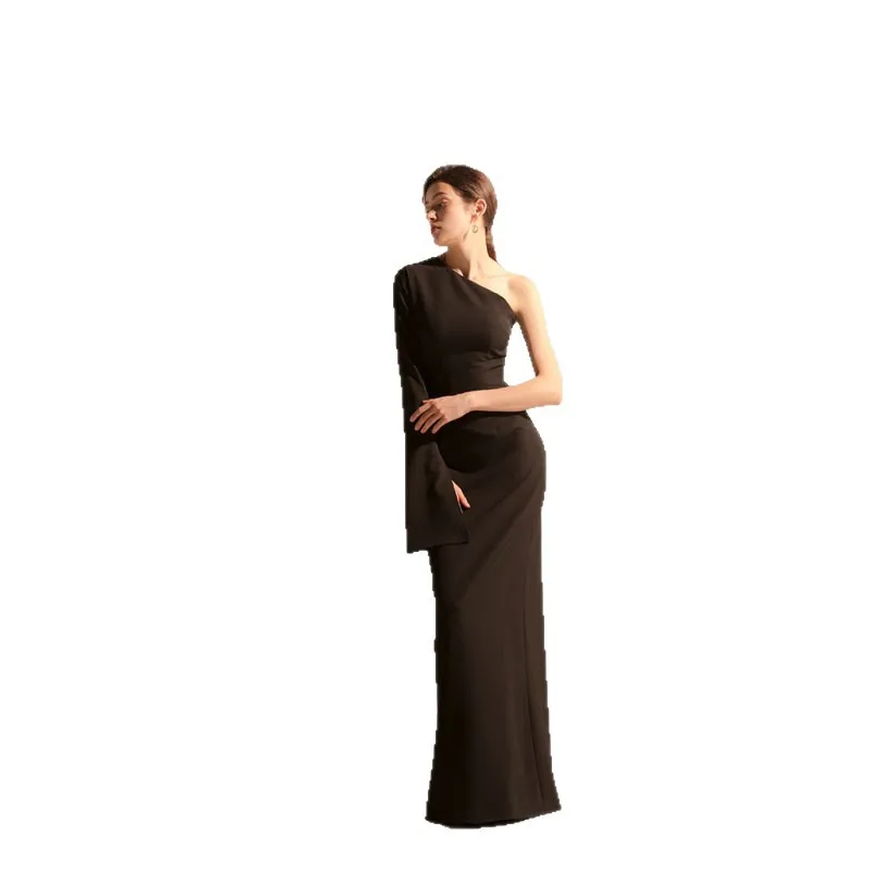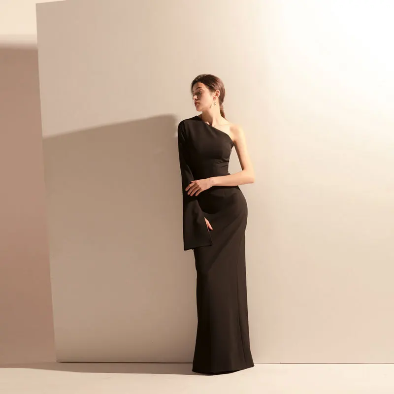 Bettergirl High Quality One-shoulder Crepe Simple Black Long Dress 2026 Ramadan New Tight Elegant Party Evening Dress
