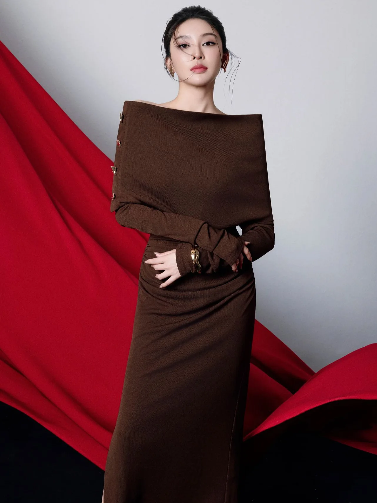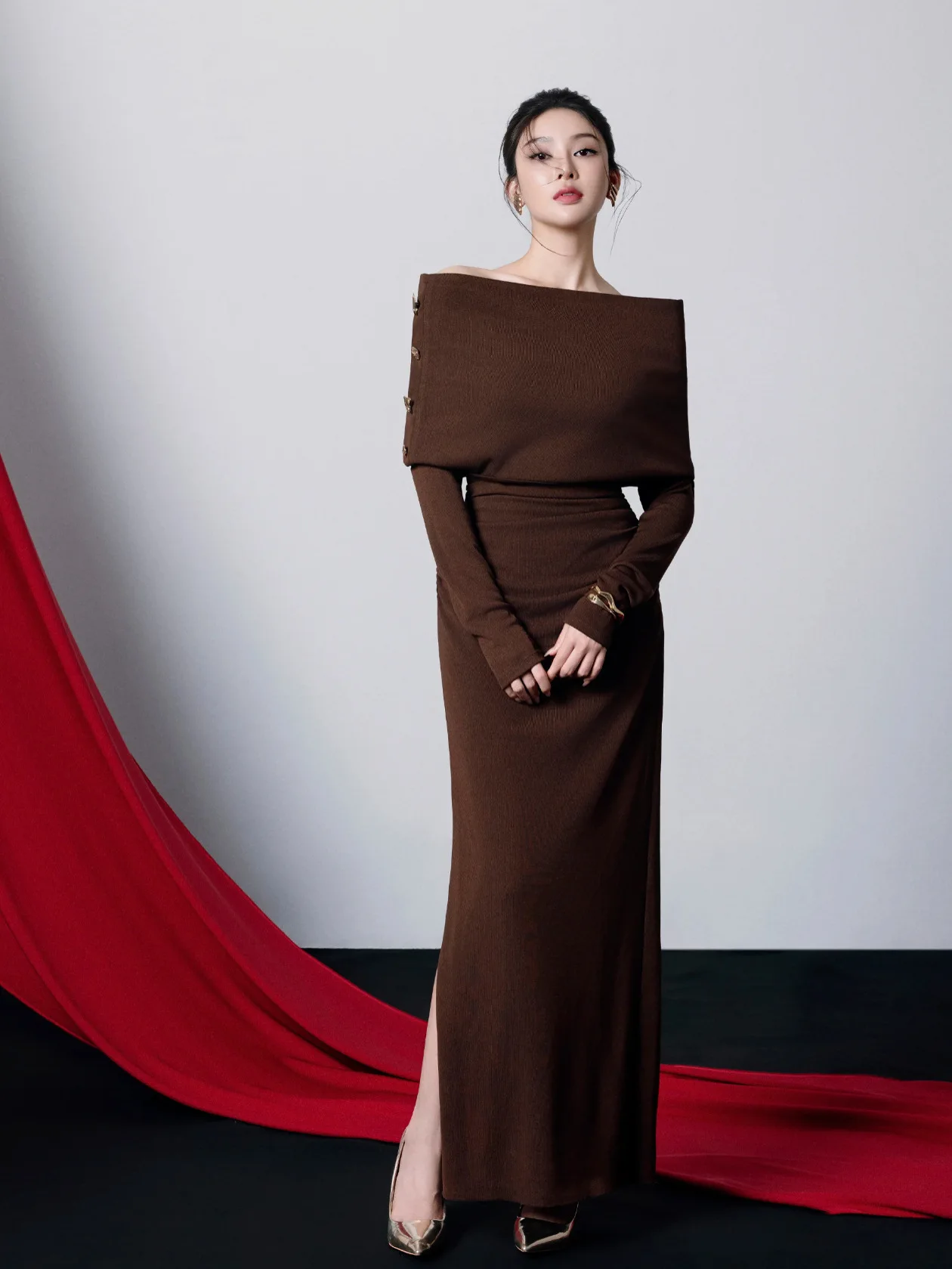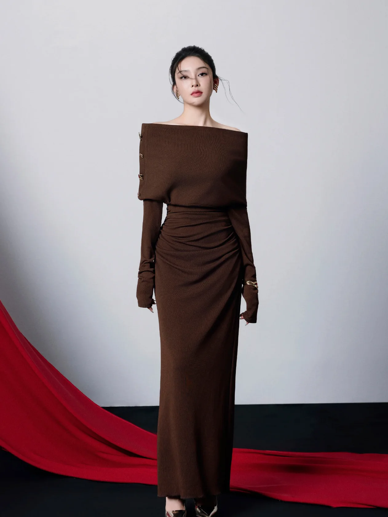 Bettergirl Sexy Off-shoulder Pleated Tight Elegant Brown Long Dress 2026 New Vietnam Knitted Simple Evening Dress