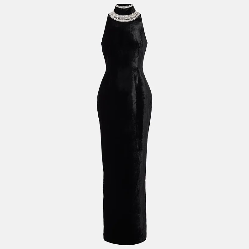 Bettergirl 2025 Early Spring New Star Fashion Heavy Industry Nail Bead Backless Gold Velvet Long Dress