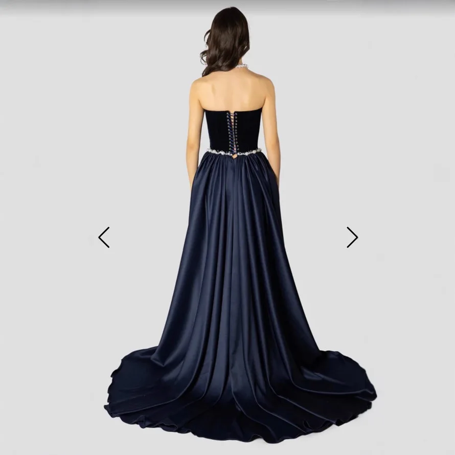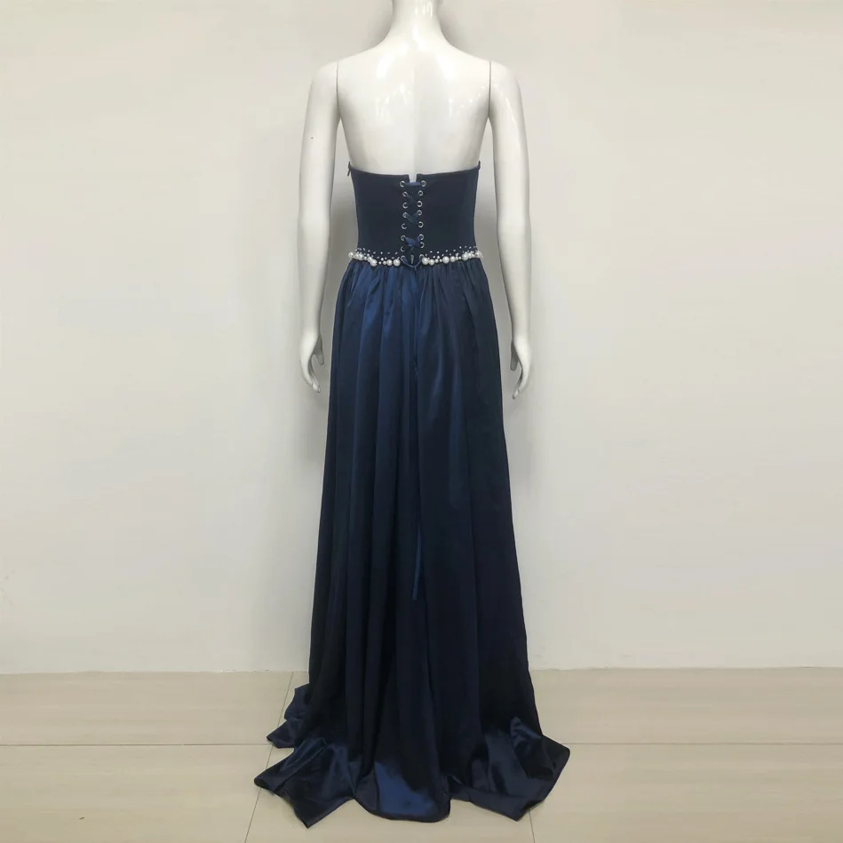 Bettergirl High-end 2026 Fashion Best Selling New French Elegant Blue Long Dress Sexy Slim Satin Velvet Party Evening Dress
