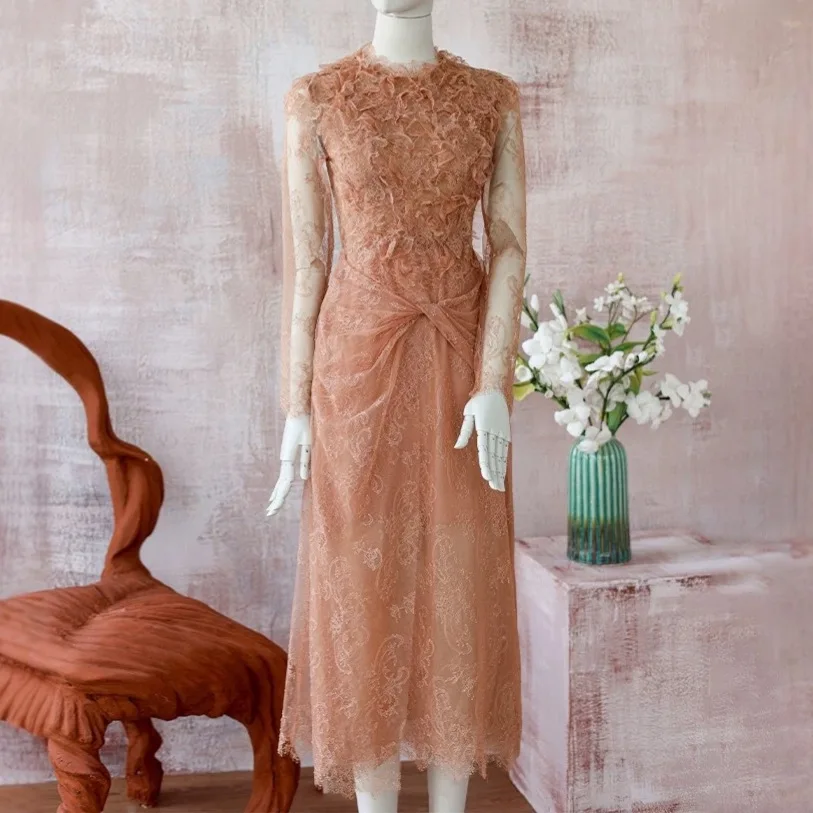 Bettergirl Spring French New Trend Vietnamese Niche Design Women's Retro Lace Merlin Dress Long Dress for Daily