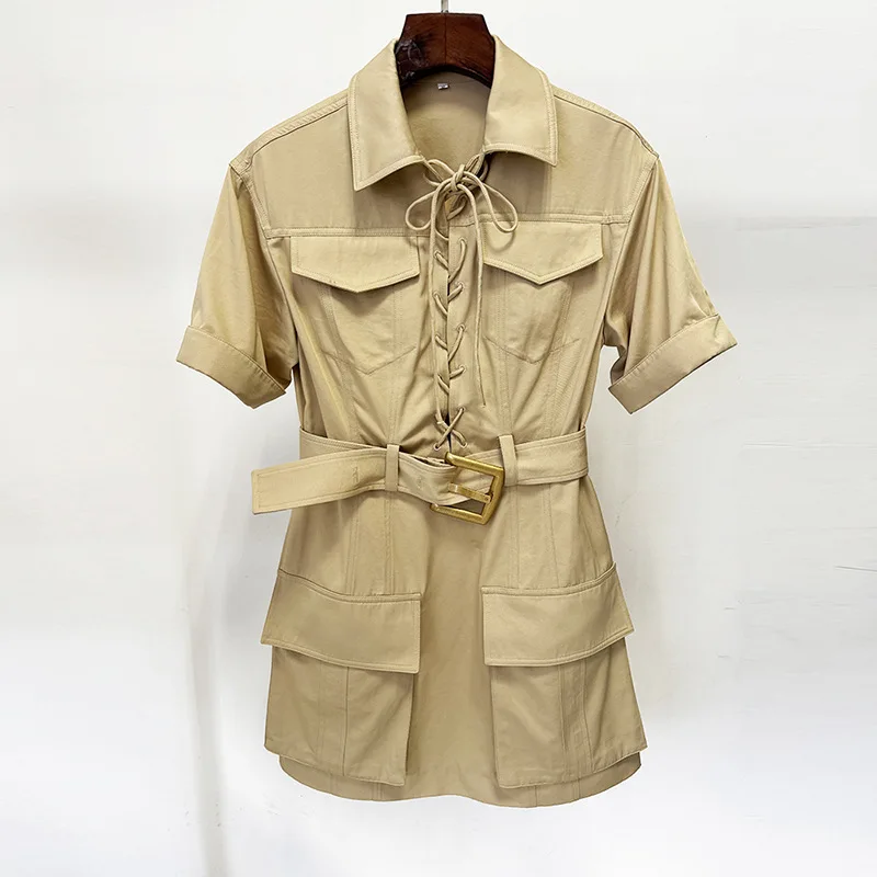 Bettergirl Fashion High Quality Spring 2026 New Tie Short Sleeved Belt Blouse Dress Casual White Short Dress