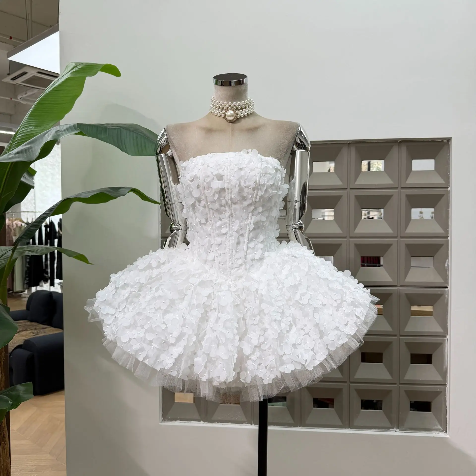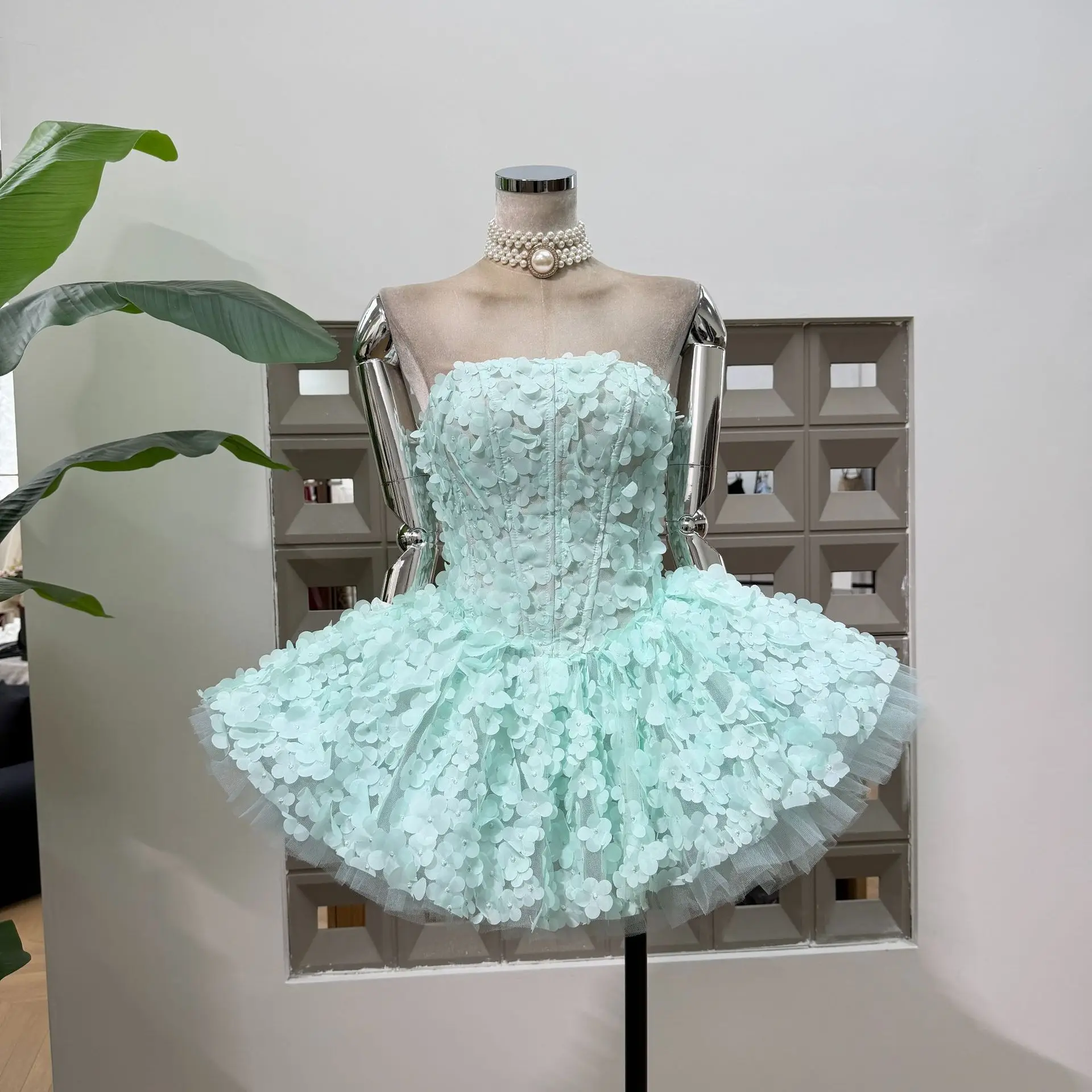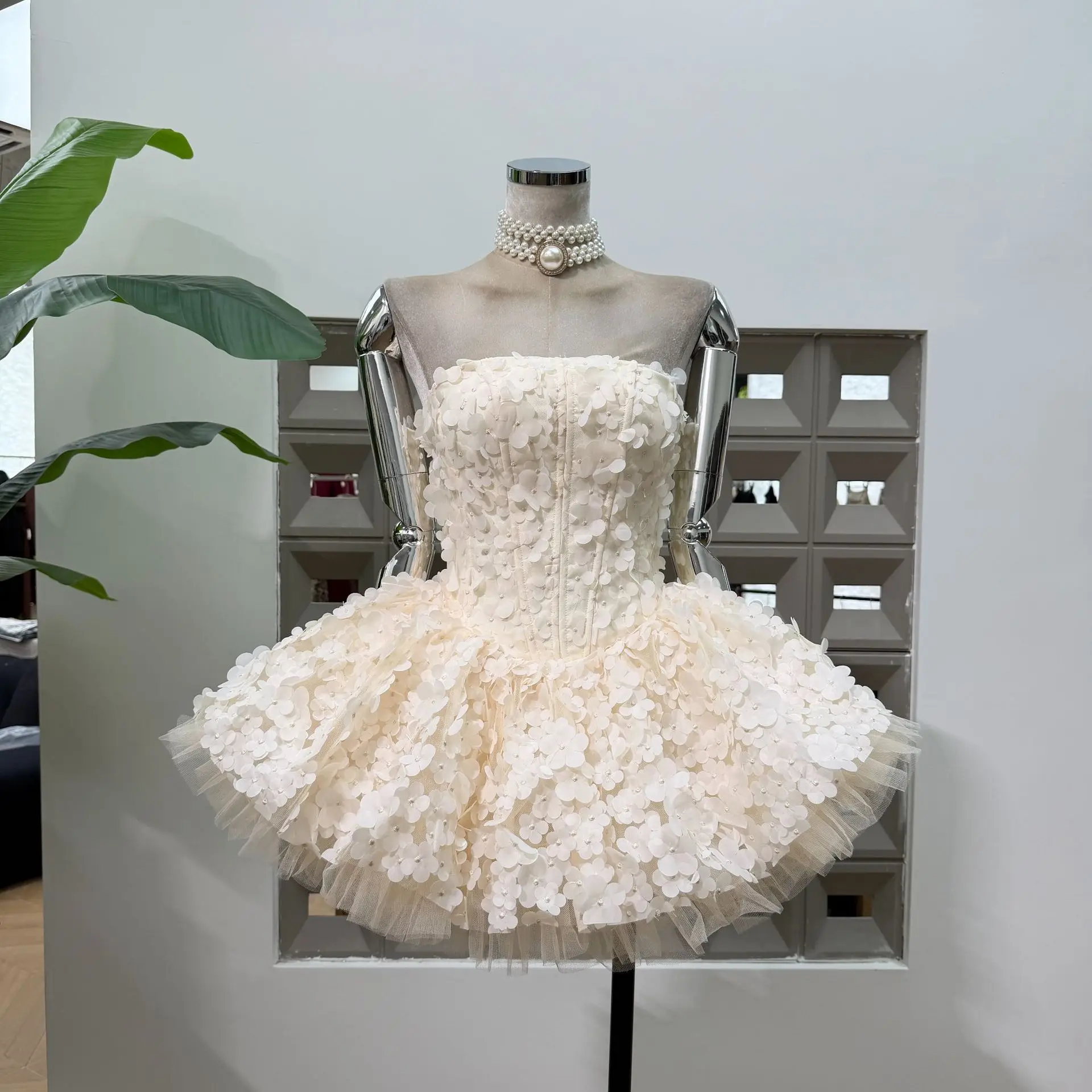 Bettergirl 2026 New Complete Flower Mesh Pleated Short Dress Fishbone Tight Elegant Party Evening Dress