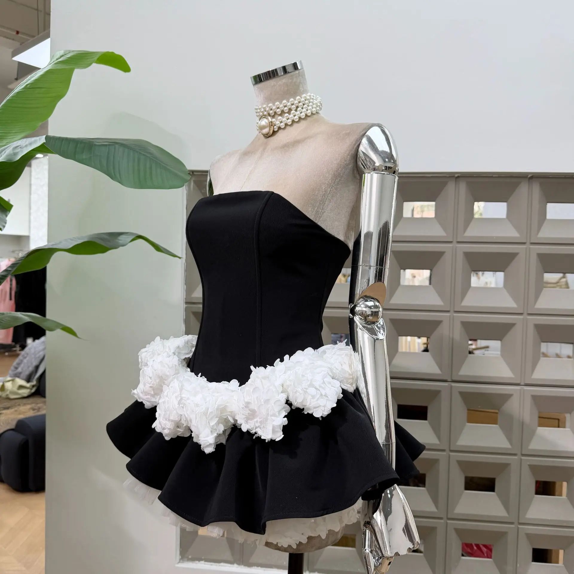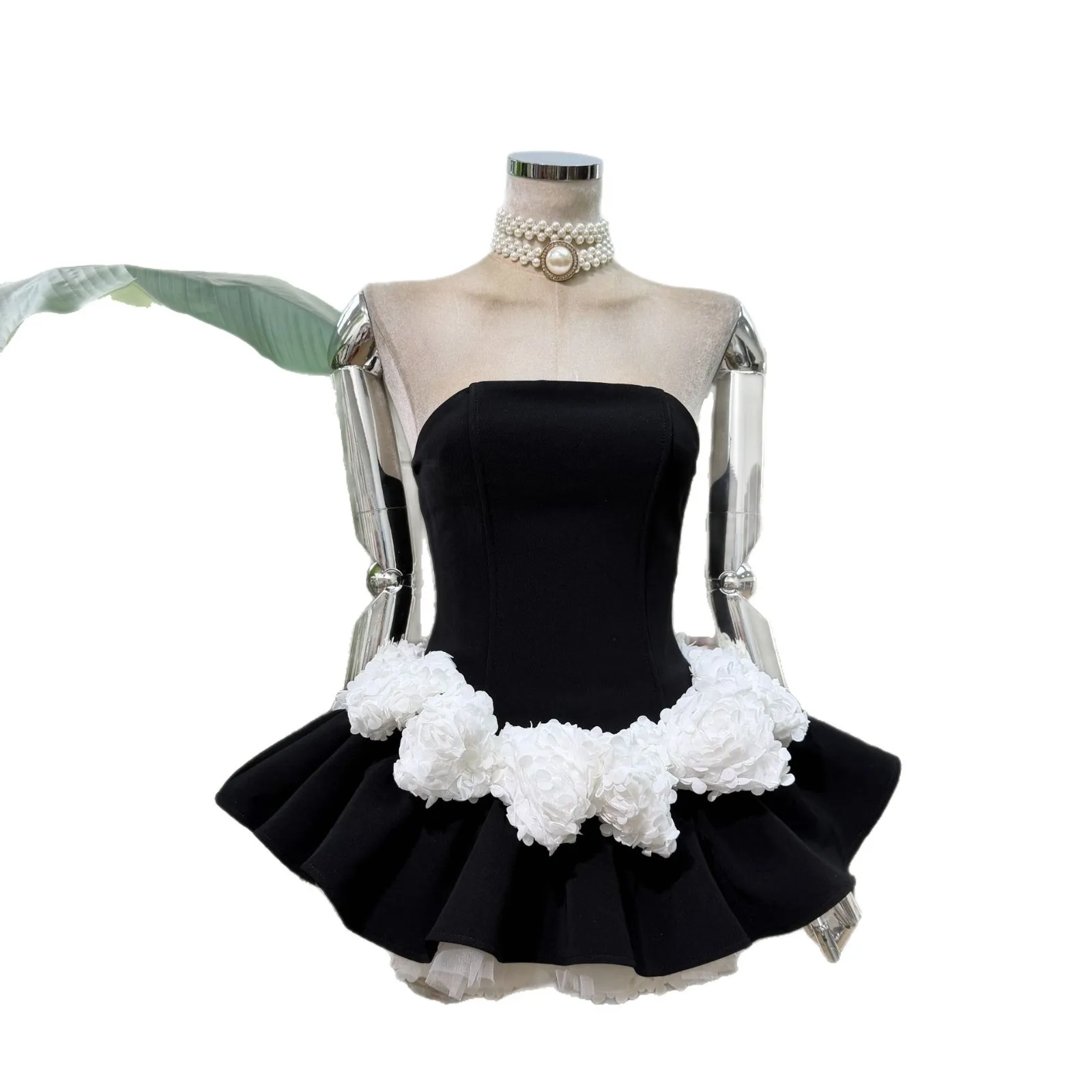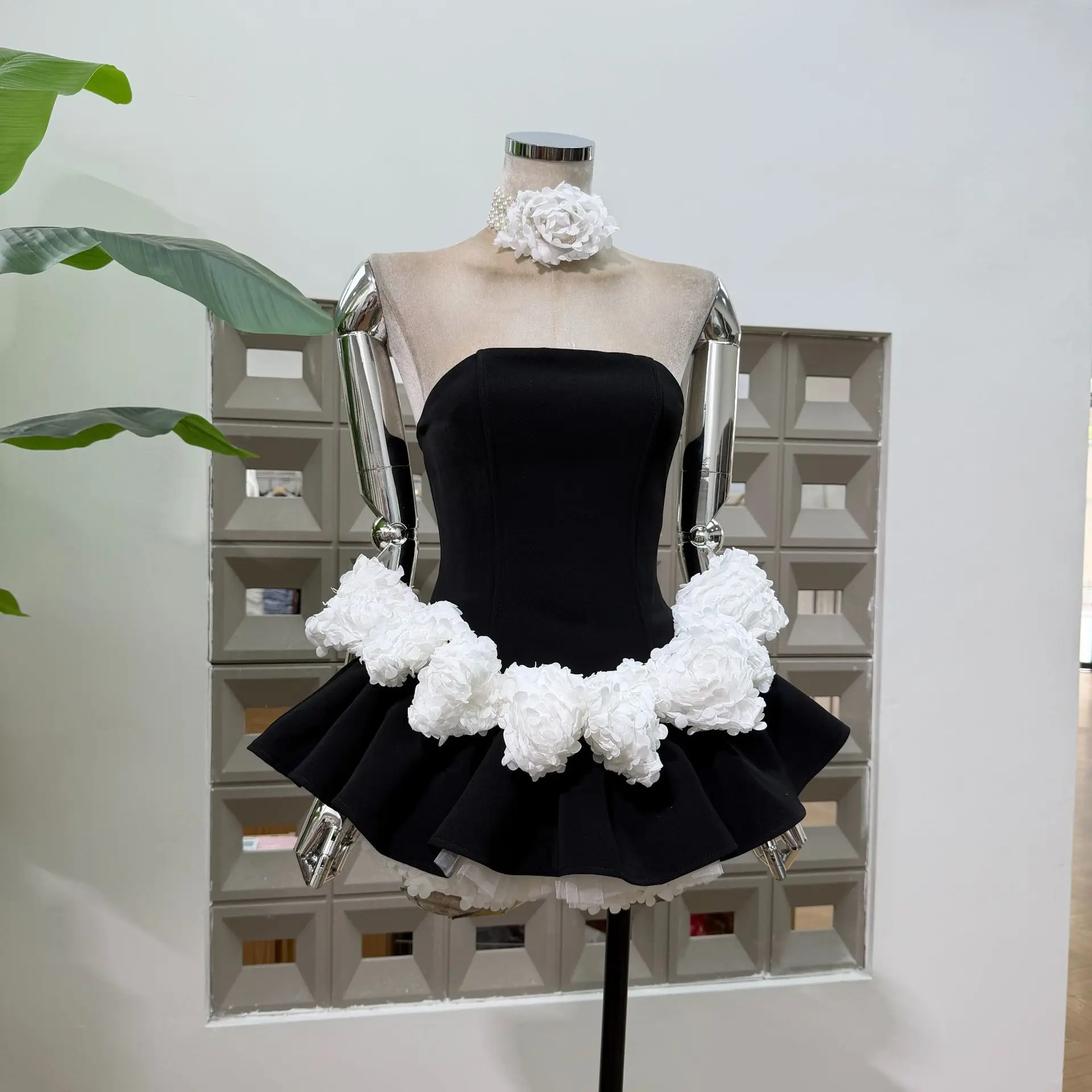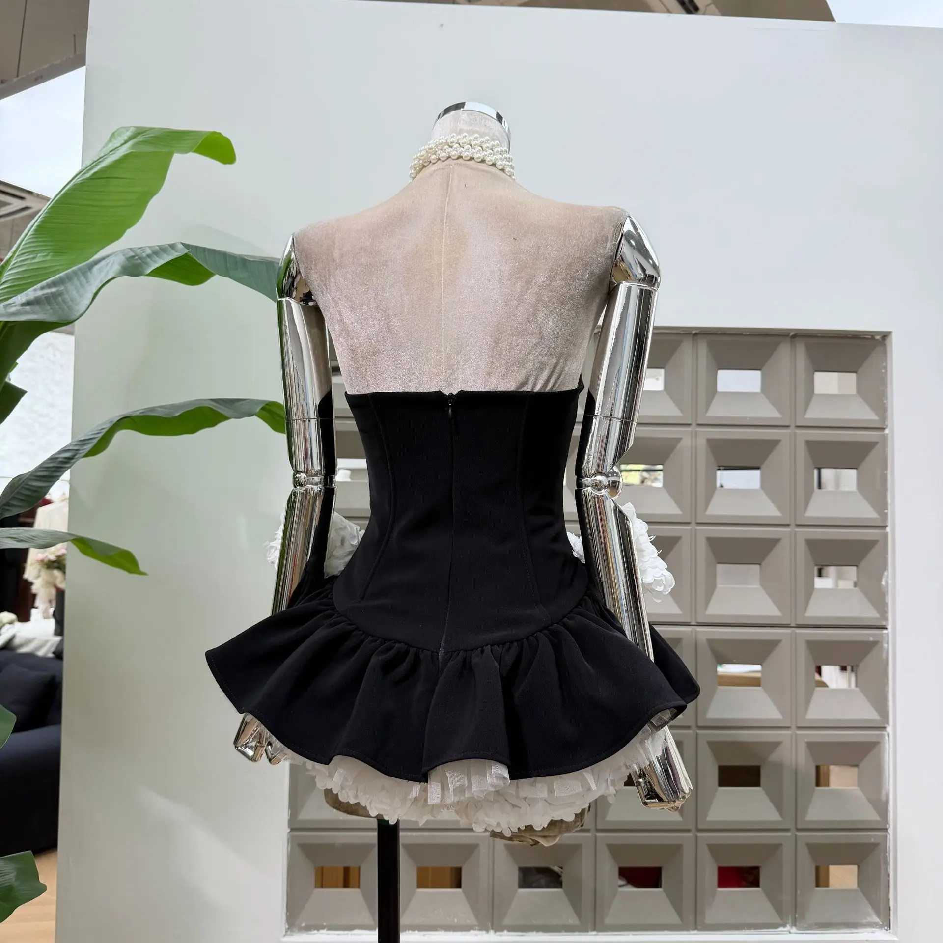 Bettergirl Fashion High Quality 2026 New Stylish Unique Mini Black Dress White Floral Mesh Velvet Elegant Evening Dress