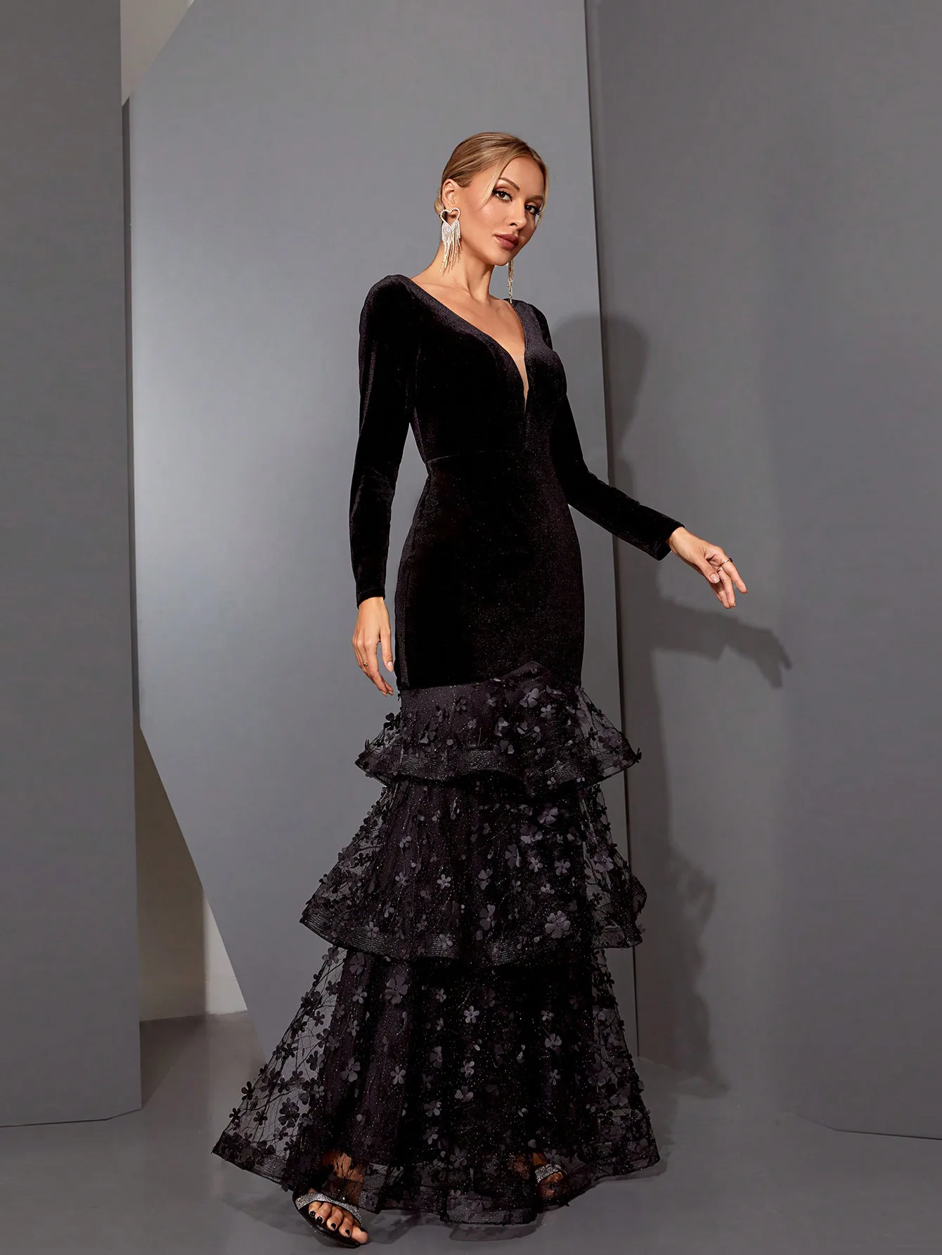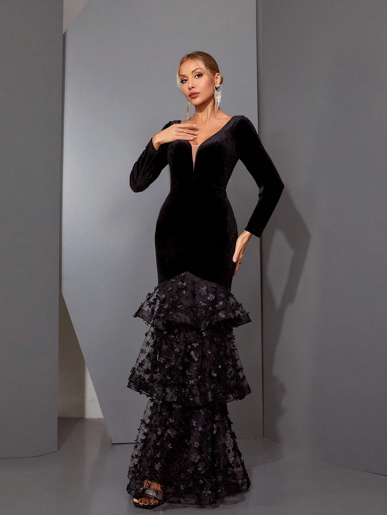Bettergirl 2026 Ramadam V-neck design long sleeved dress slim fit fish tail party dress