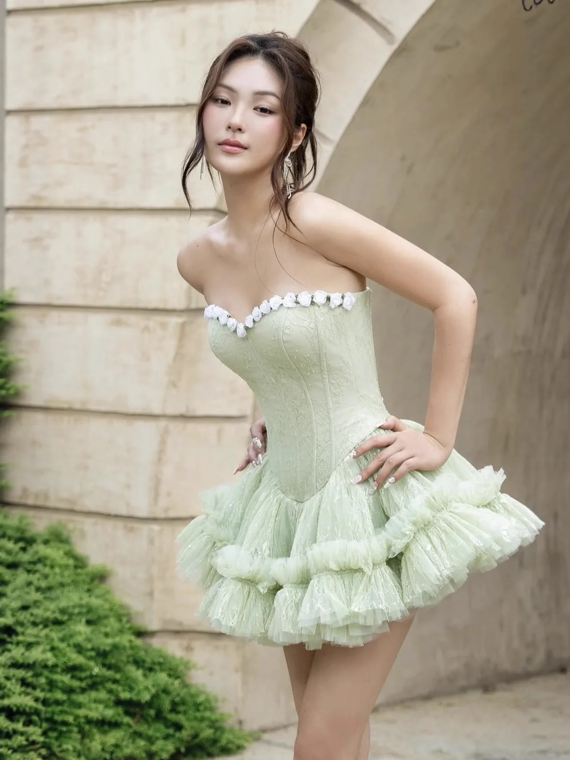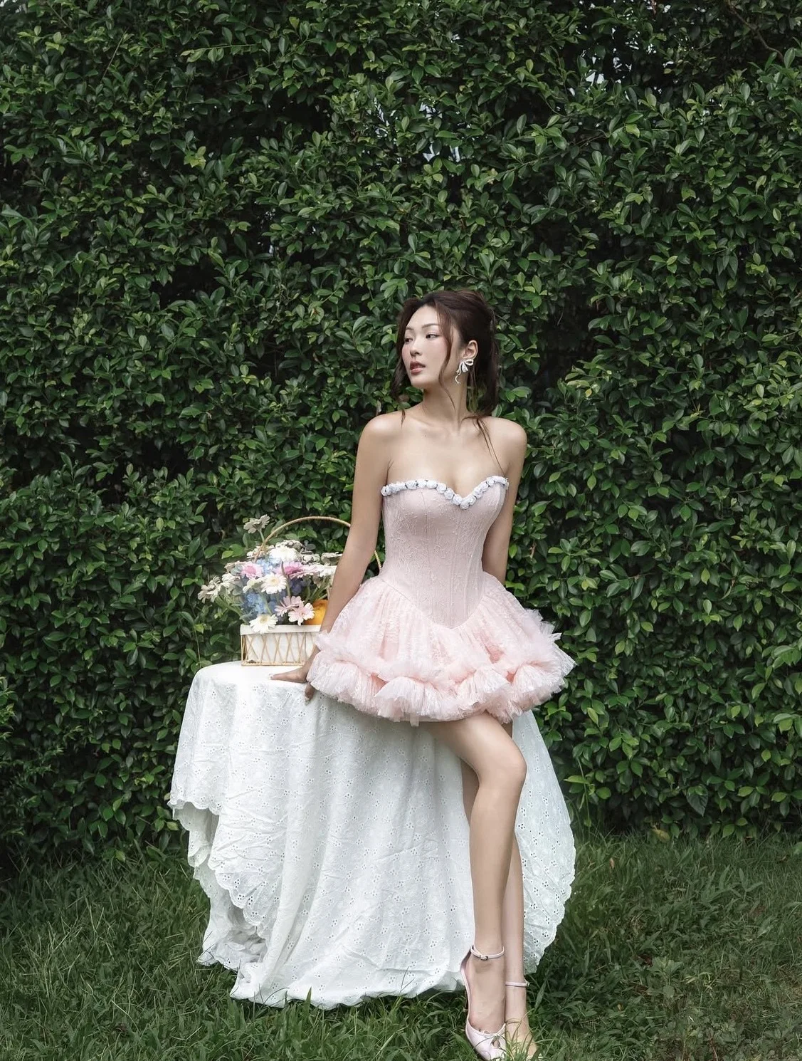 Bettergirl Vietnam Fashion 2026 Spring New Lace pink Party Dress Tight Floral Fishbone Mesh Mini Dress