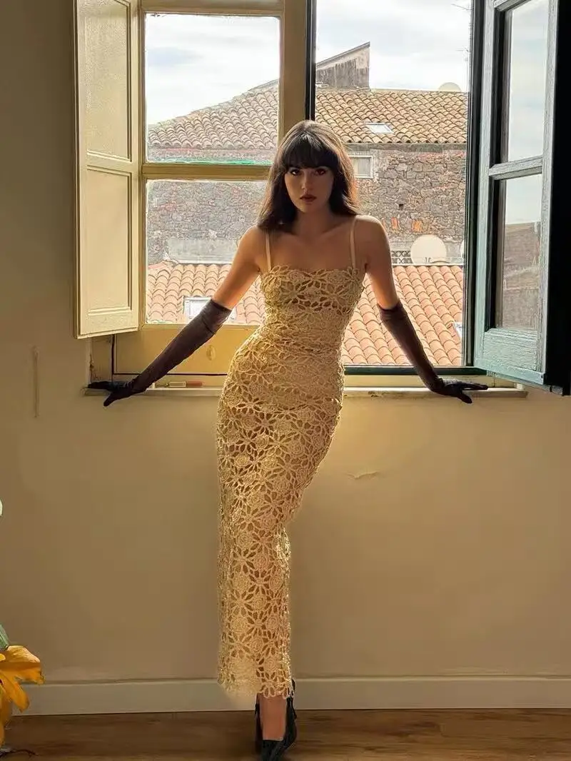 Bettergirl French Floral champagne Gold Hollow Out Long Dress 2026 Spring Strapless Elegant Party Dress