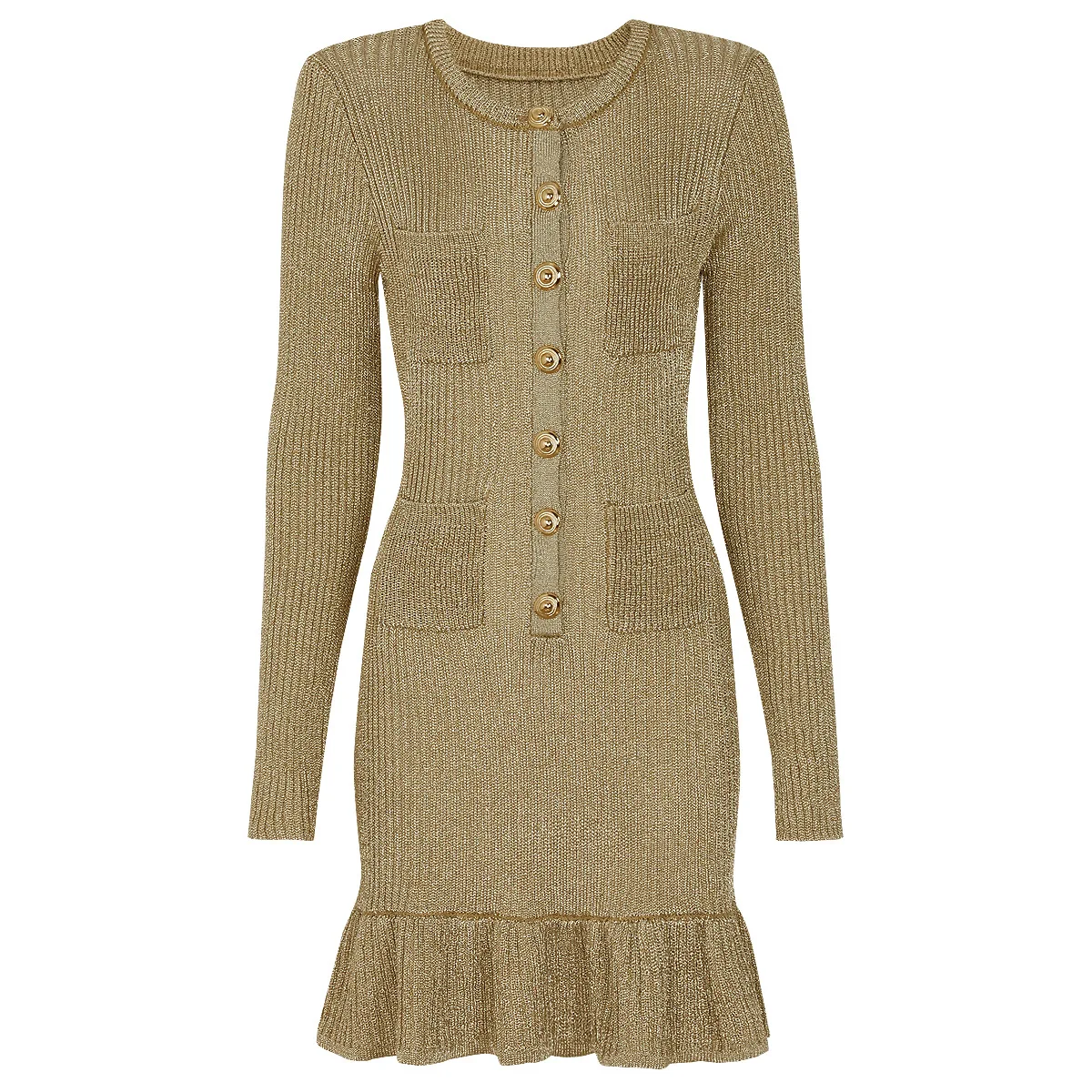 2026 New Design Premium Slim Fit Round Neck Long Sleeve Knit Dress for Daily