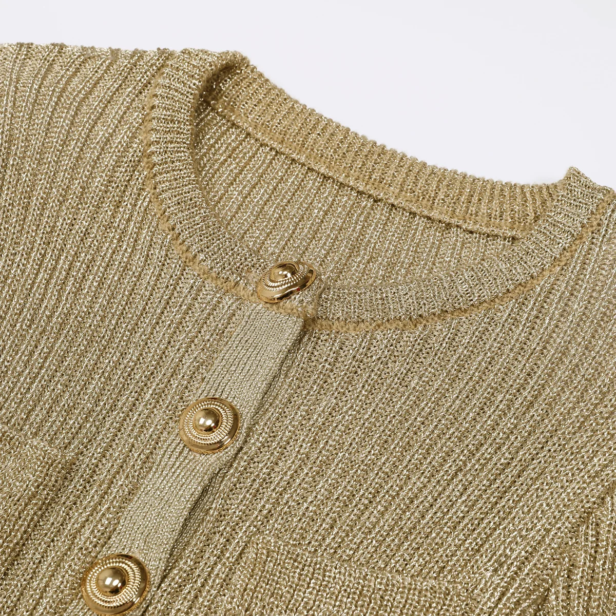ZYHT 15545 Women's Blouses & Shirts Mint Green Tweed Blazer with Puff Sleeves & Peplum Fit Button-Detail Long Sleeve Jacket