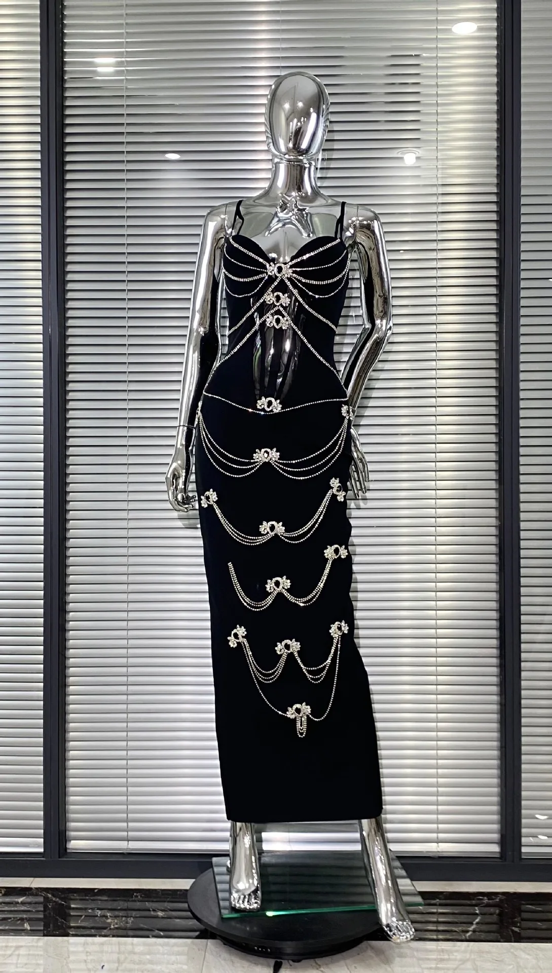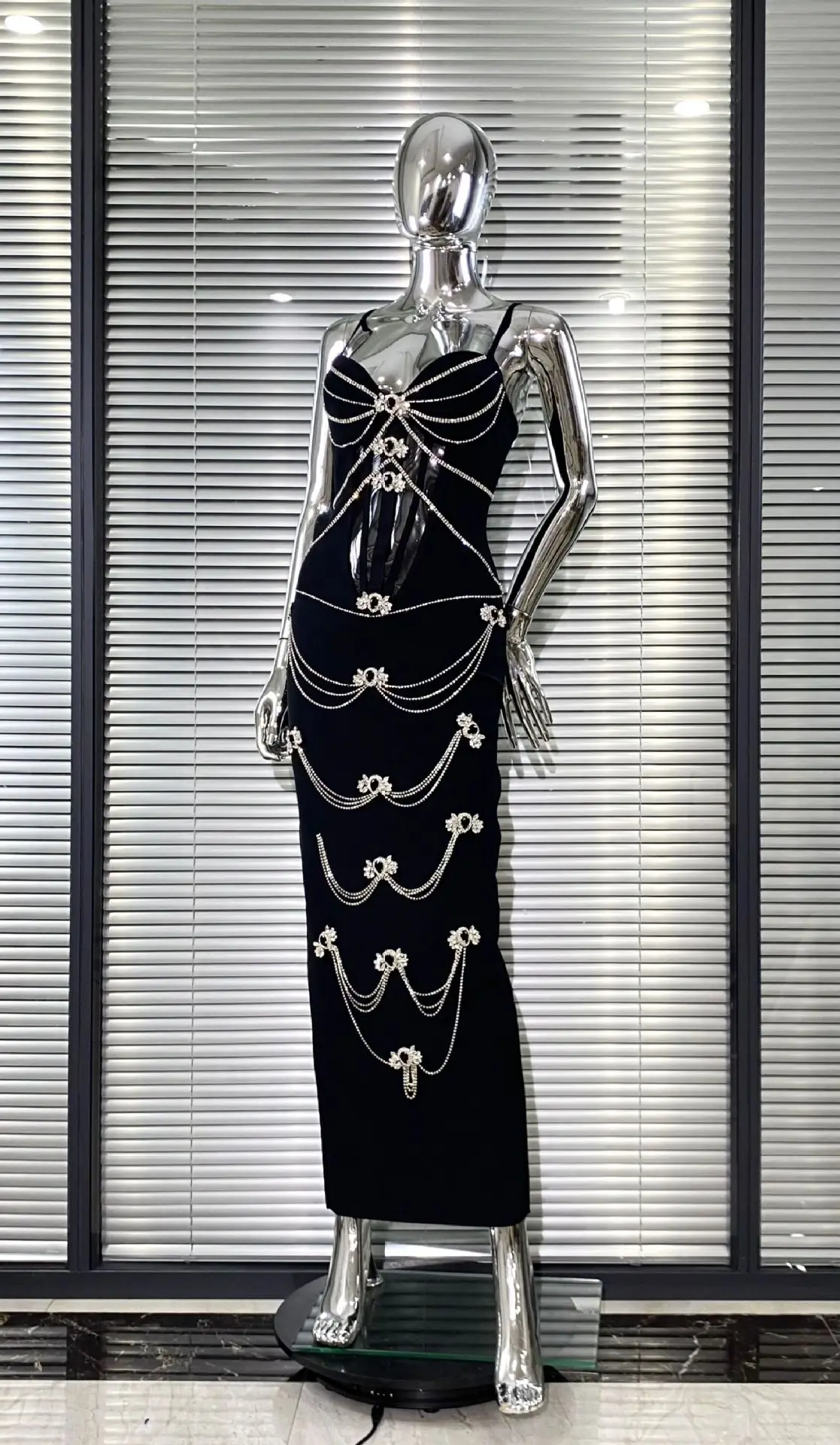 2026 Women Fashion Retro Luxury Rhinestone Chain Sexy Strapless Black Bandage Dress for Party