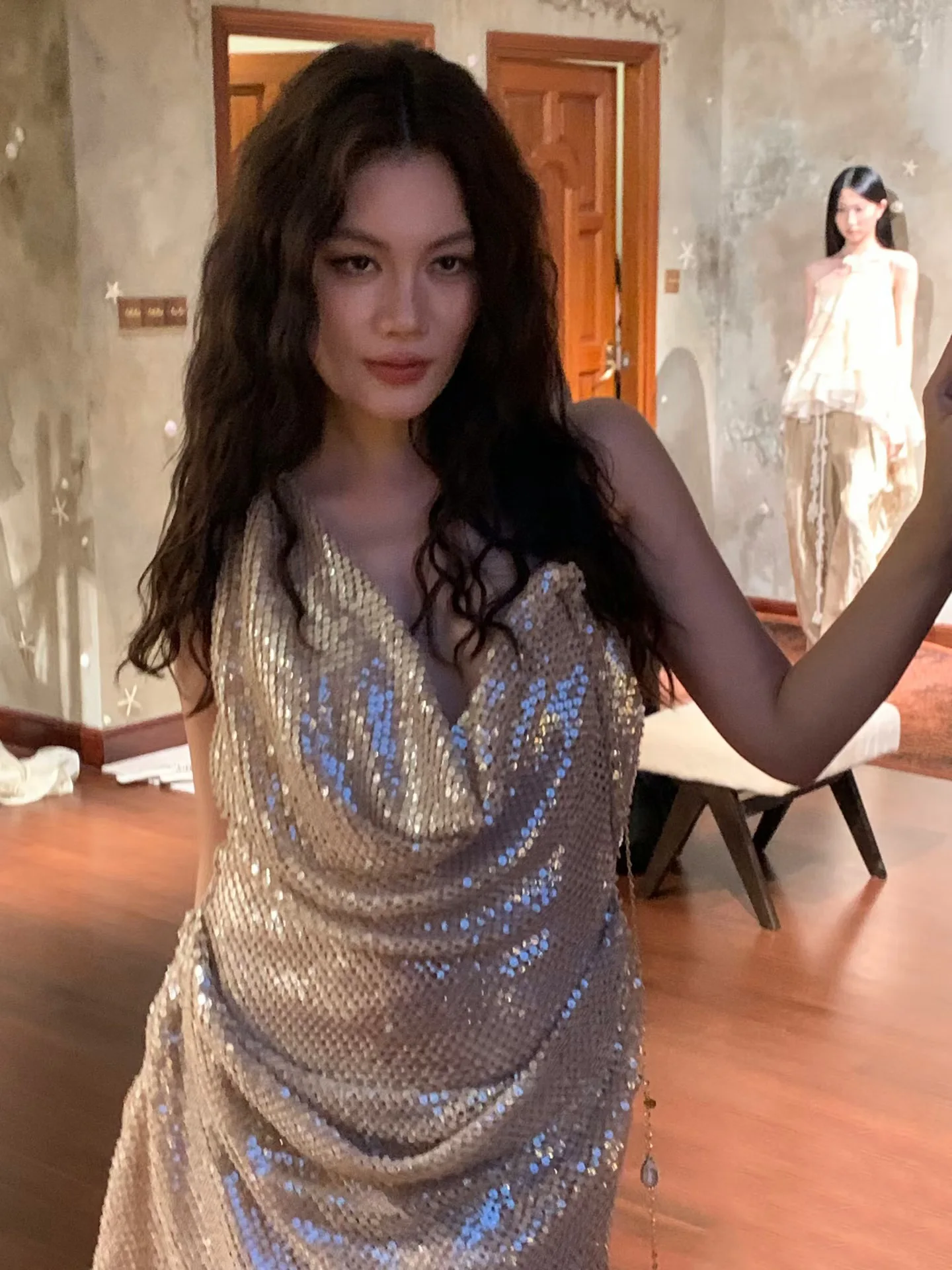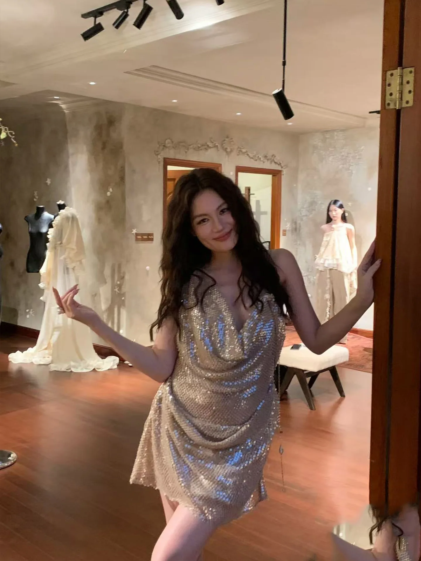 Bettergirl Spring 2026 New Sexy Backless Silver Chain Sequin Short Women Dress Birthday Party Mini Sexy Elegant Dress