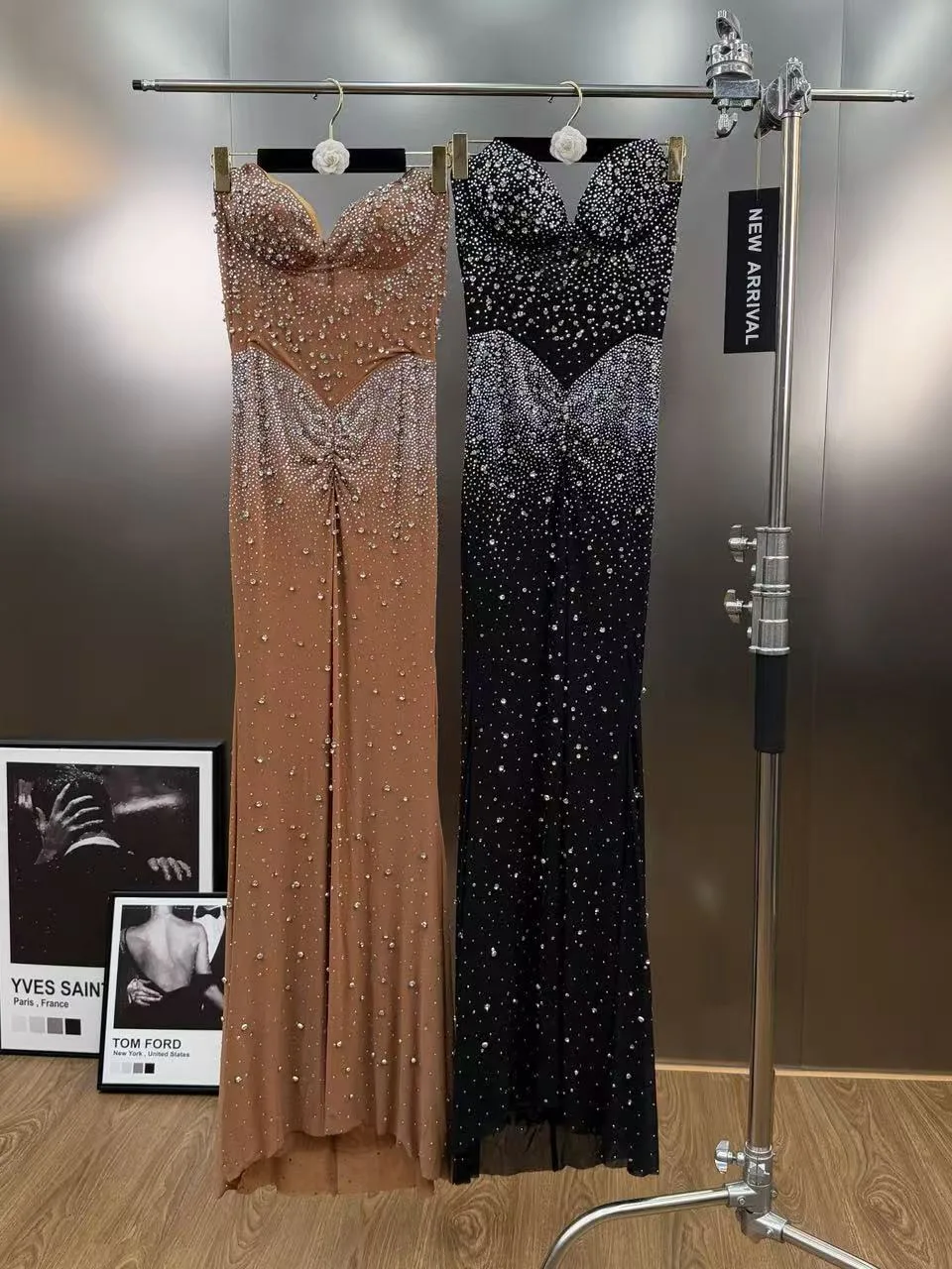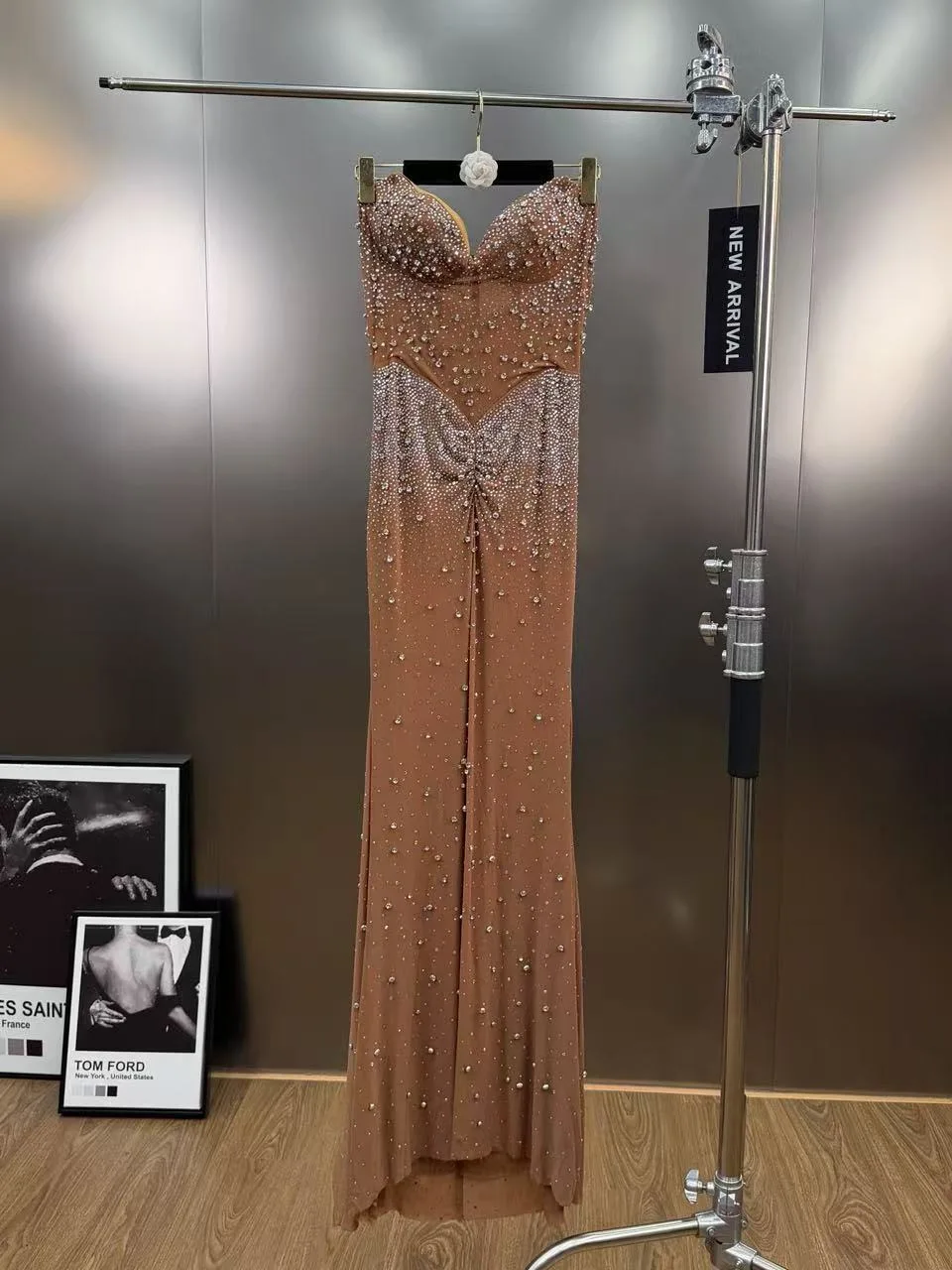 Bettergirl 2026 Spring French Luxury Beaded Long Brown Evening Dress Sequin Elegant Formal Party Dress