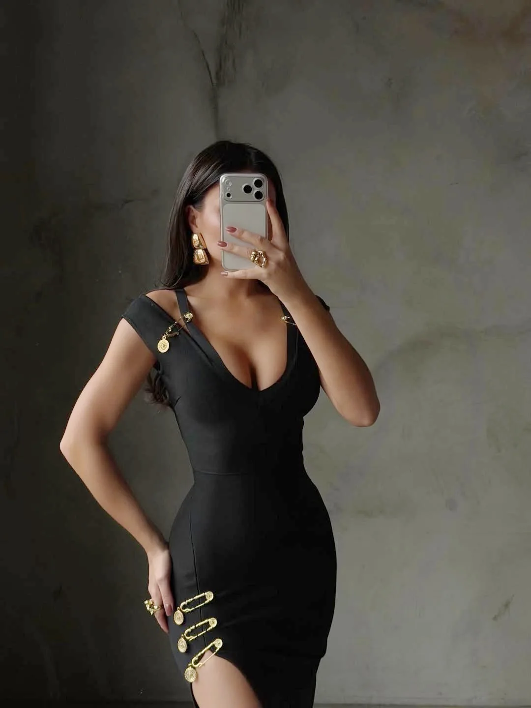 Bettergirl Fashion V-neck Black Long Bandage Dress Pins Tight Formal Party Dress