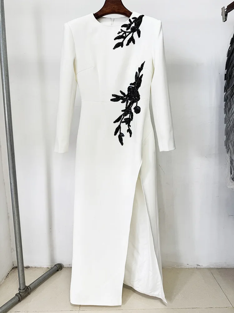 Bettergirl 2025 Star Series Embroidered bead nail bead flower long sleeved slit long dress