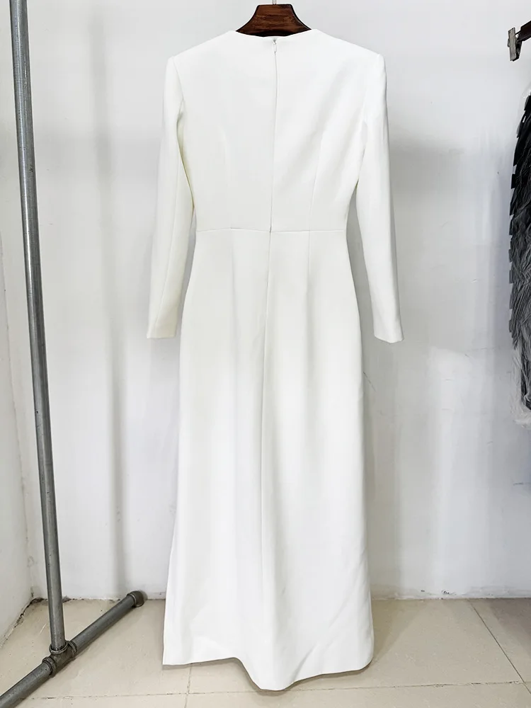ZYHT 73849 European Wholesale Fashion Casual One Shoulder Ruched Maxi Dress Side Slit Pleated Long Sleeve Dresses for Women