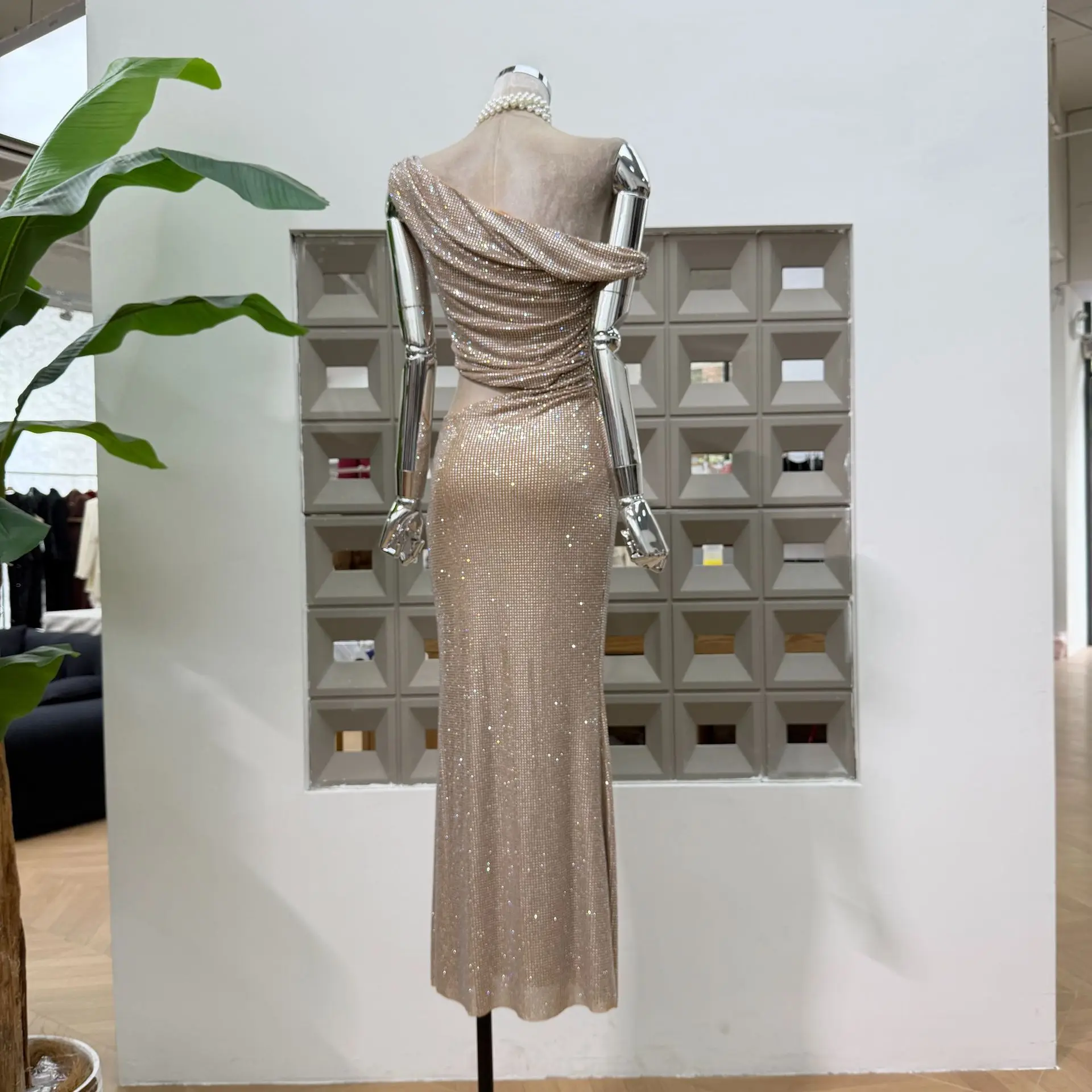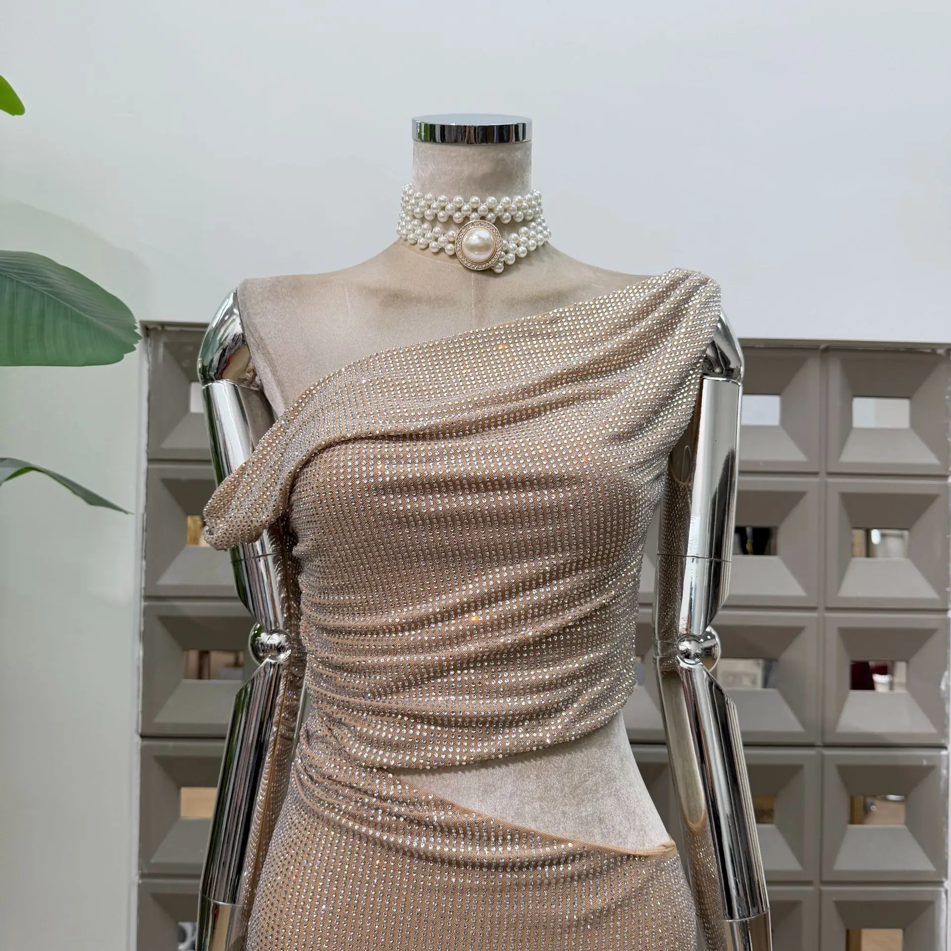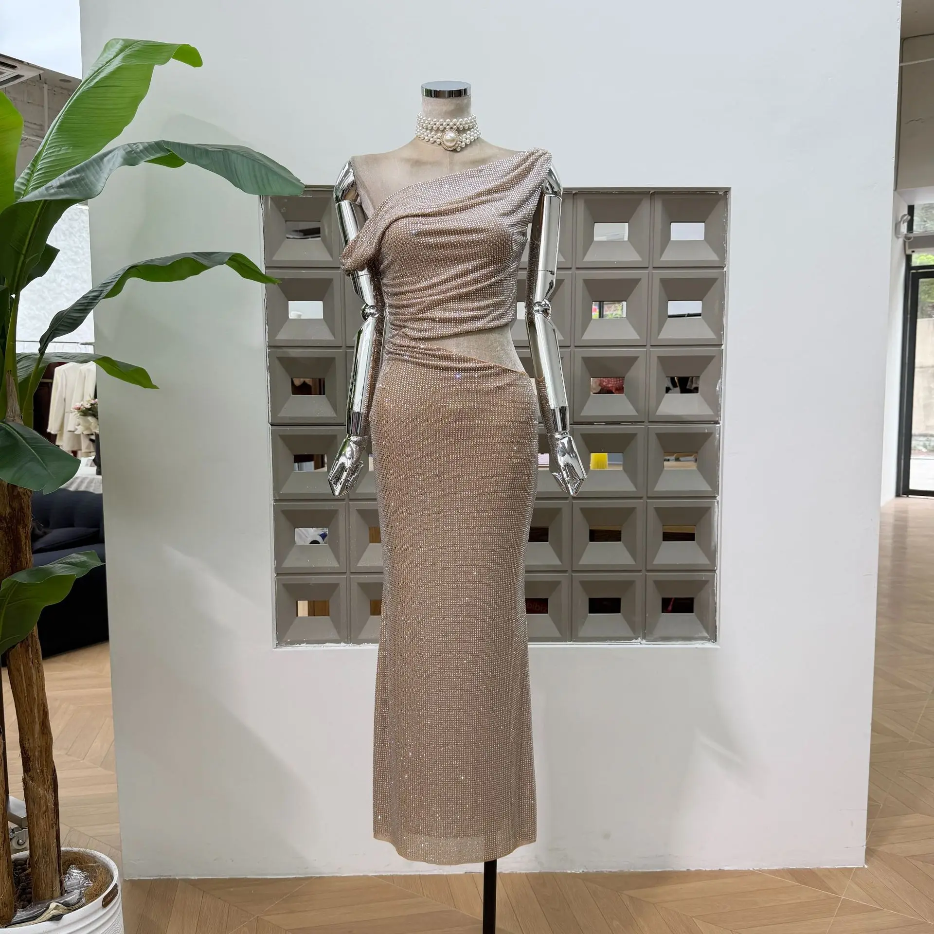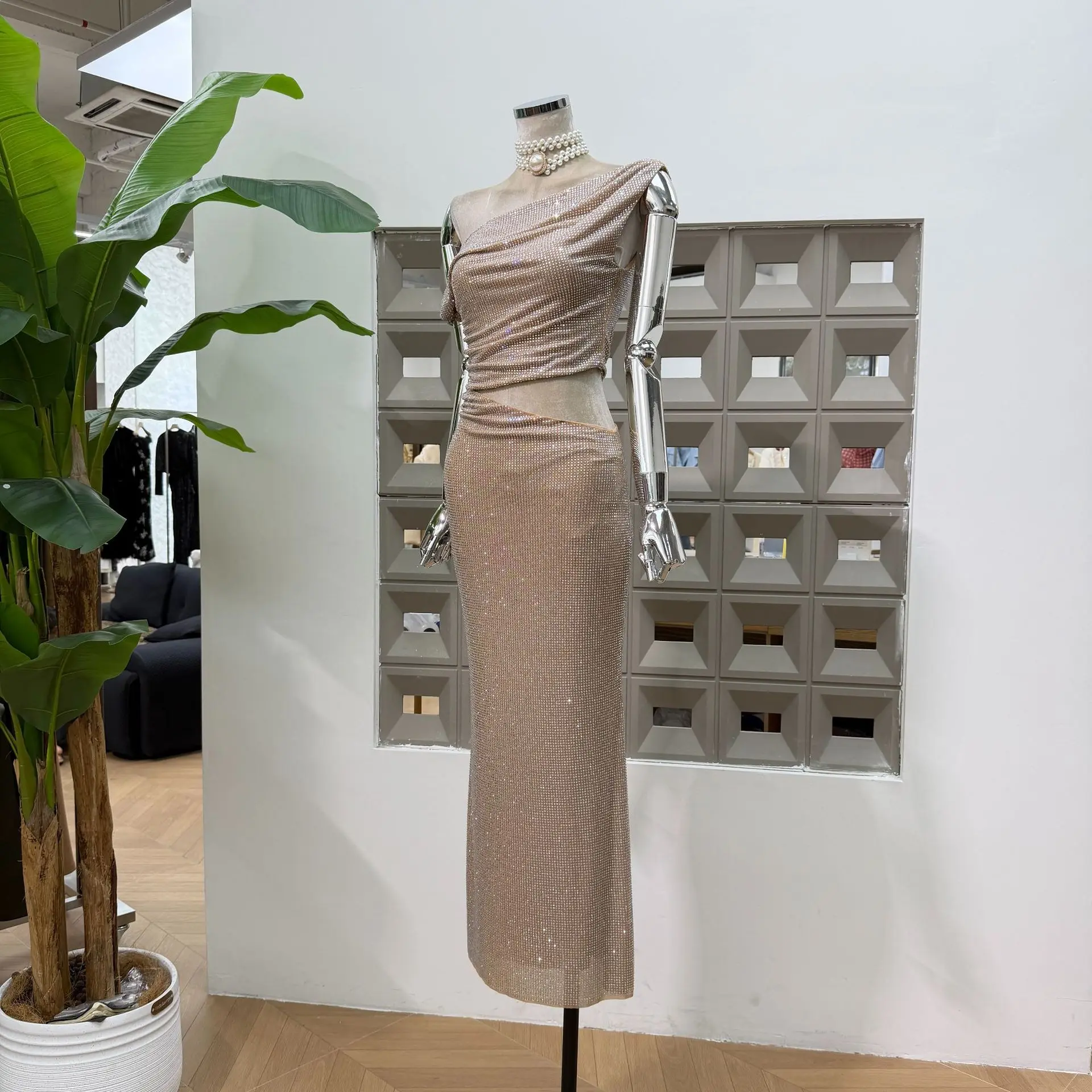 New Stock Arrival Women's High-Quality Diamond One-Shoulder Off-Waist Fitted Dress for Party