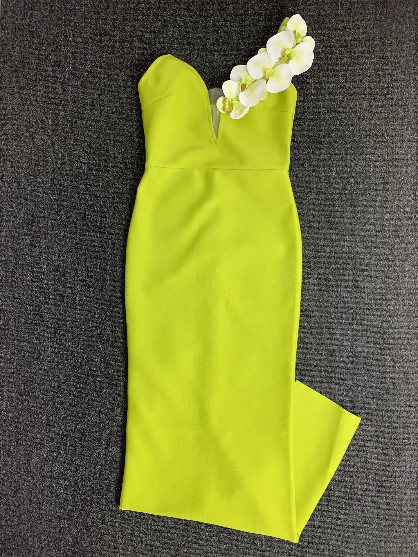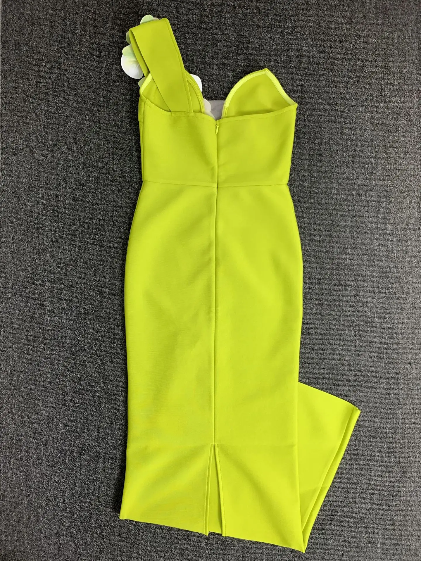ZYHT 73903 Gemstone Crystal 3D Flower Decoration Ruched One Shoulder High Slit Long Sleeve Maxi Simple Elegant Evening Dress