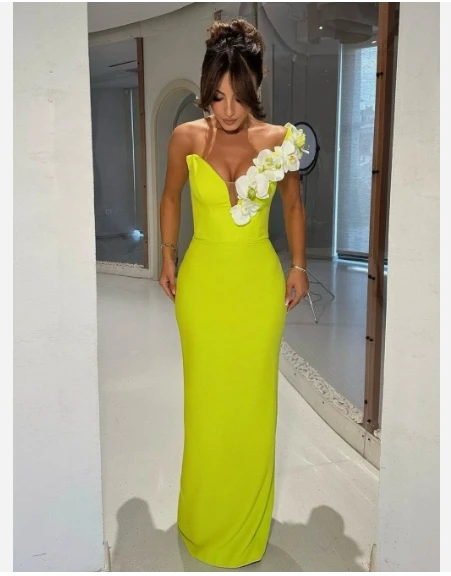 ZYHT 73571 Custom Elegant V-Neck Cape Sleeve Dresses Trendy Straight Yellow Maxi Party Gowns Modest Evening Dress for Women