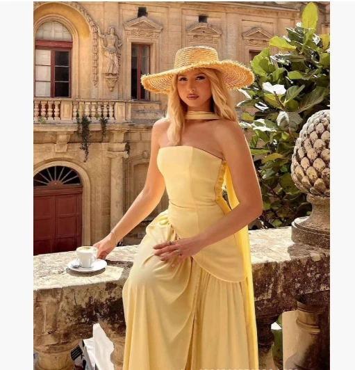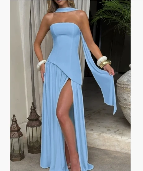 Spring and Summer 2025 Sexy Backless Tube Top Slim Fit Dress New Hot Sale Split Strap Long Dress