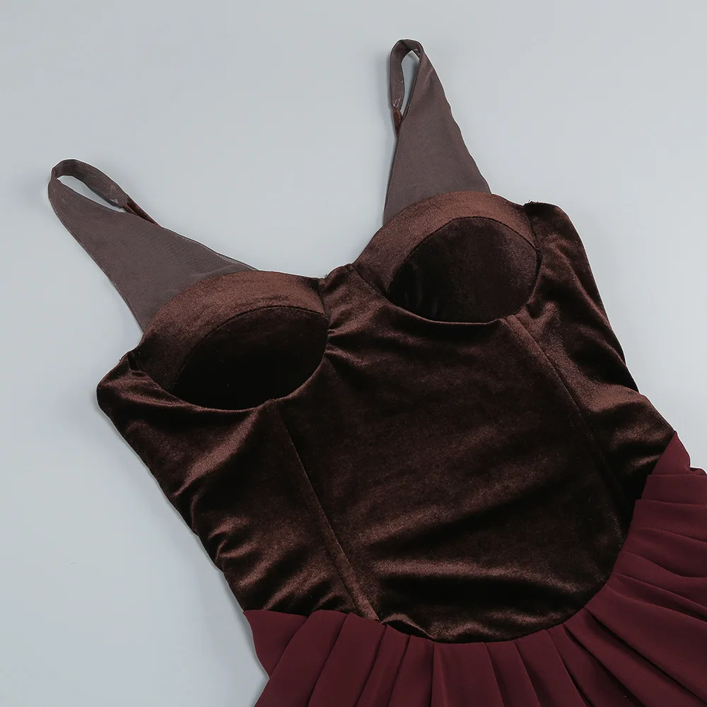 New Sexy Mesh Straps Velvet Corset Patchwork Long Dress Women Sleeveless Backless Slim Dresses Elegant Evening Party Gowns