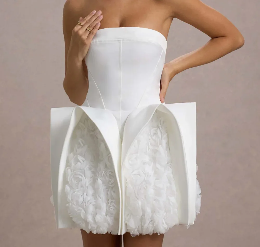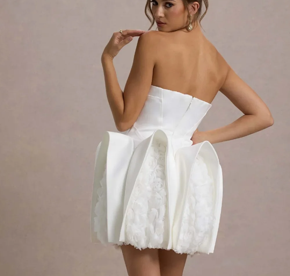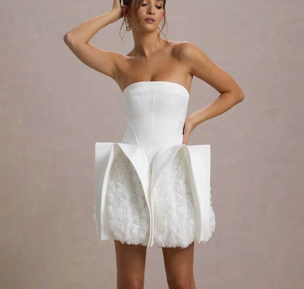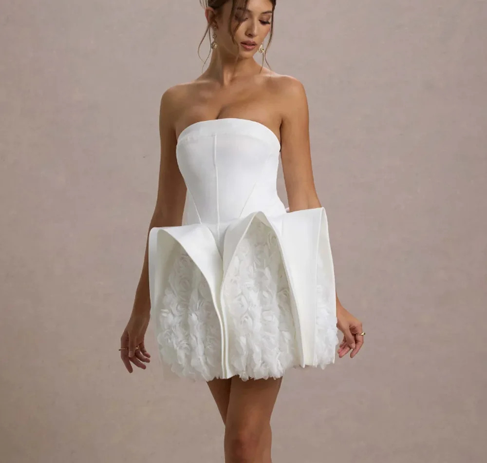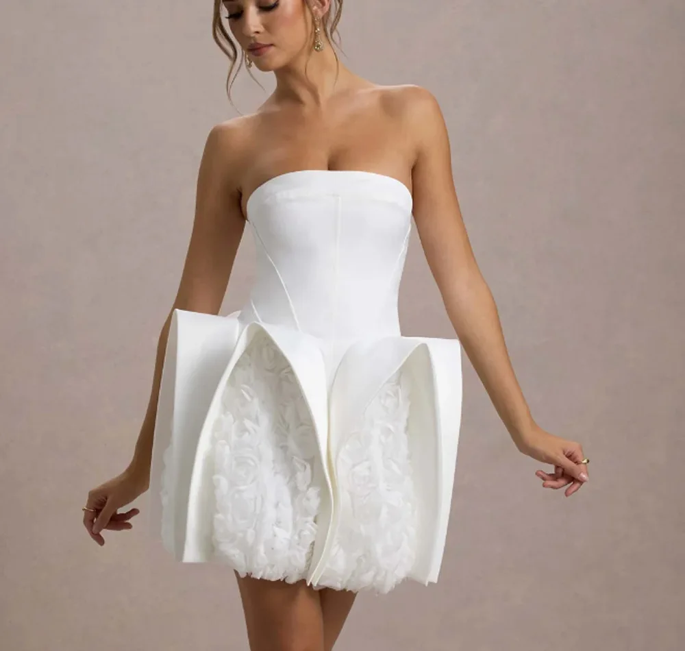 Sexy Strapless White Florals Bodycon Short Dress Cute Girls' Birthday Party Celebrate Wedding Celebrity Wholesale Women Dress