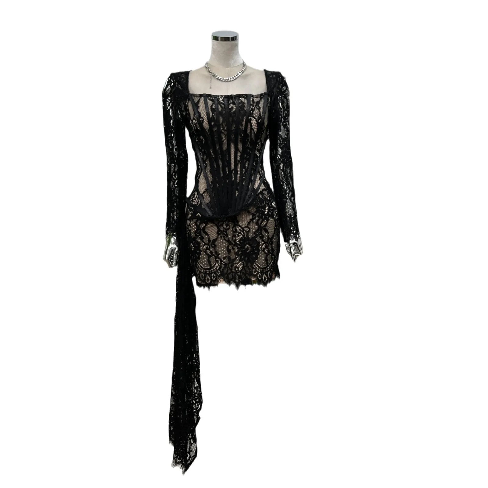 Women's Elegant Lace Luxury Evening Dress Sexy Long Sleeves Formal Occasion Dresses Birthday Evening Cocktail Party Dress