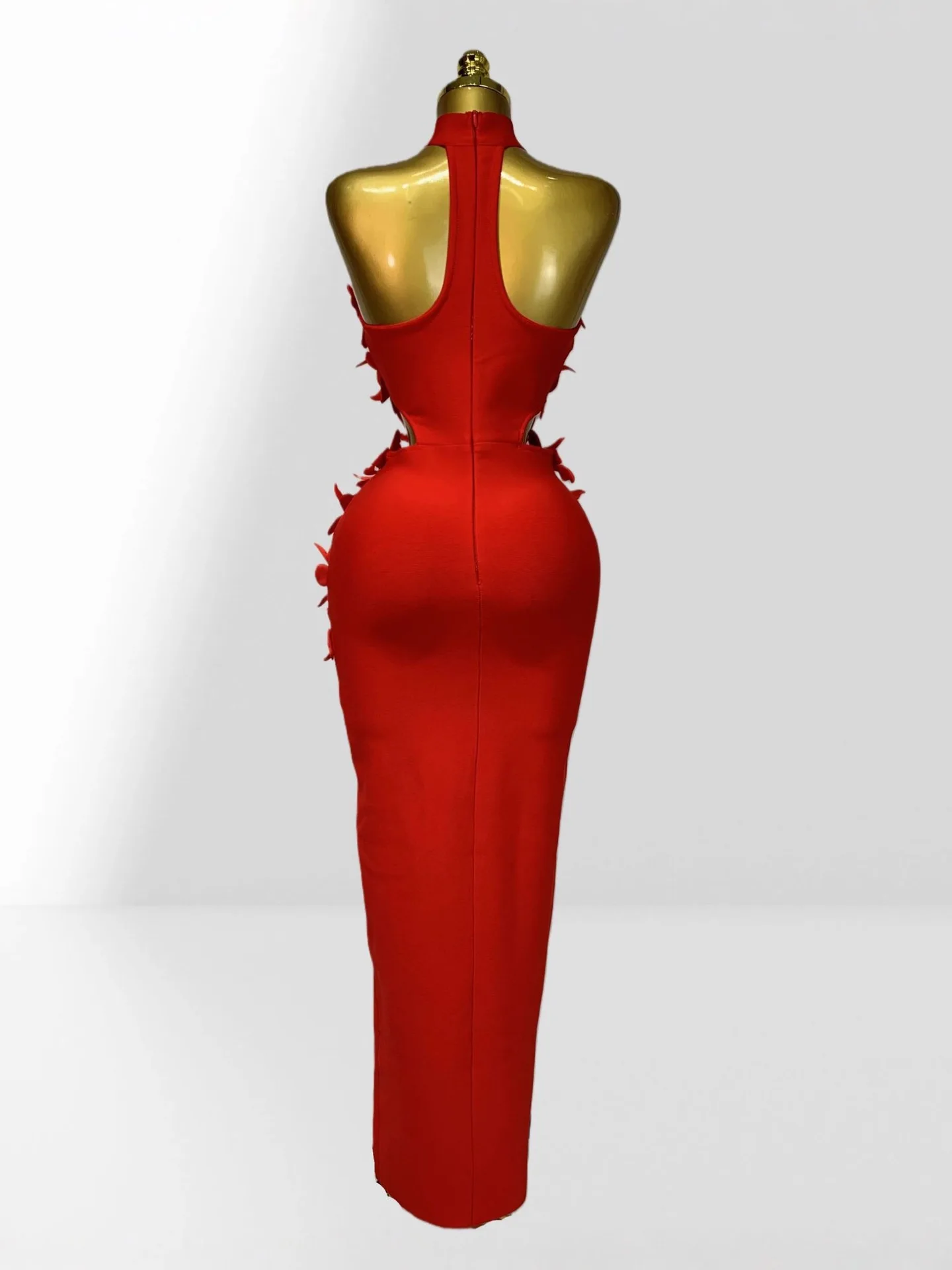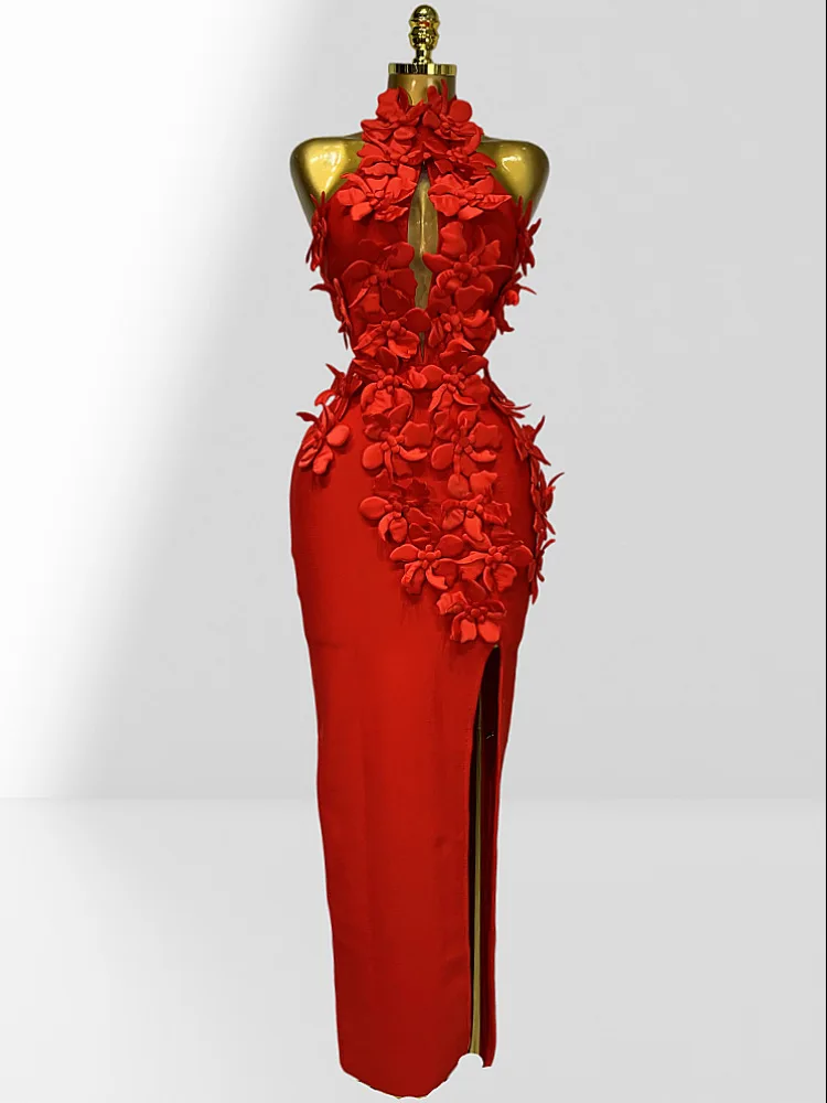 Red Black Women Sexy Off the Shoulder Florals Keyholes Bodycon Long Bandage Dress Celebrate Wedding Christmas Party Outfit