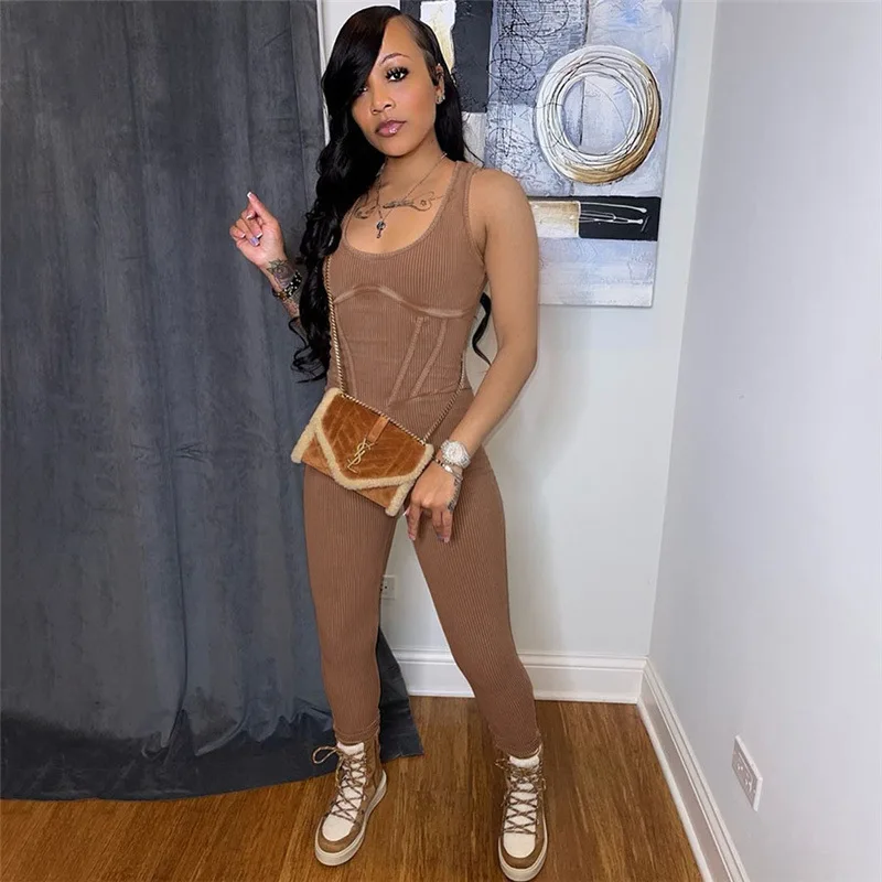 Women's 2023 Summer New High Waist Tight Thread Sleeveless Casual Sports Jumpsuit for Women